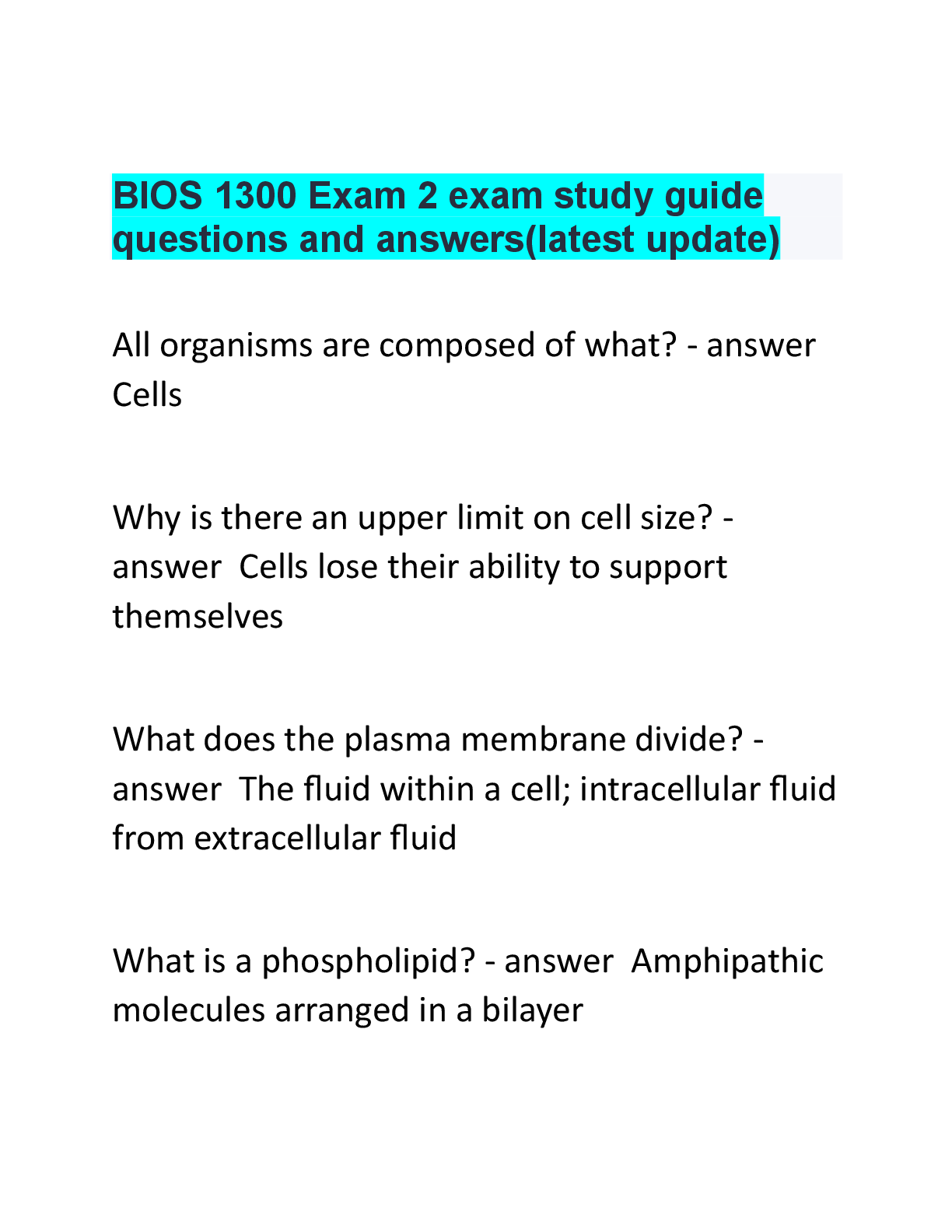 *NURSING > EXAM/TEST TEMPLATE > BIOS 1300 Exam 2 exam study guide questions and answers latest update .pdf