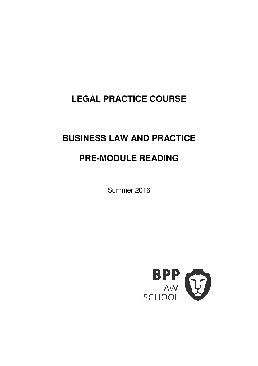 Law > Manual > LEGAL PRACTICE COURSE BUSINESS LAW AND PRACTICE PRE-MODULE READING Summer 2016