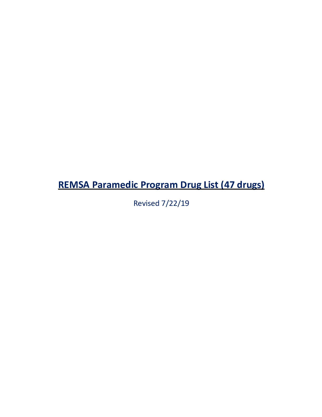 Pharmacology > Manual > REMSA Paramedic Program Drug List (47 drugs) Revised 7/22/19