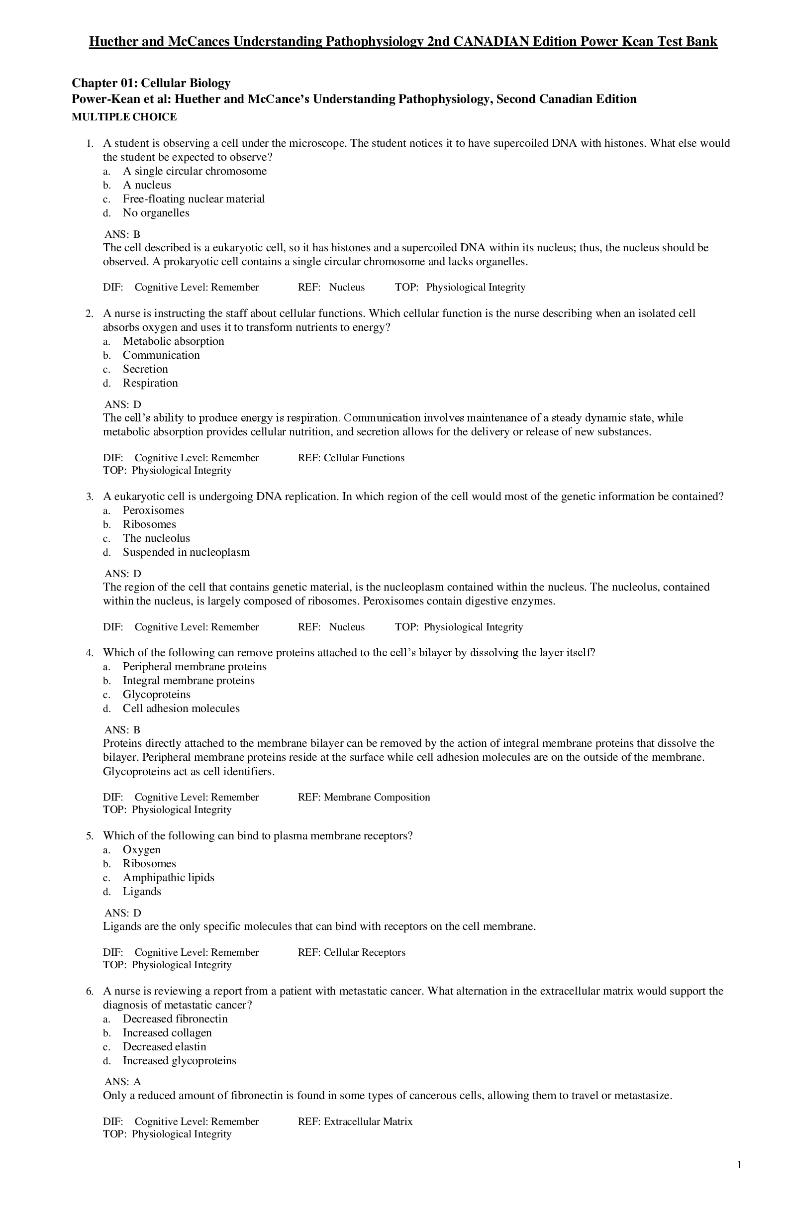 Education > Manual > Test bank Huether and McCance's Understanding Pathophysiology, 2nd Canadian Edition