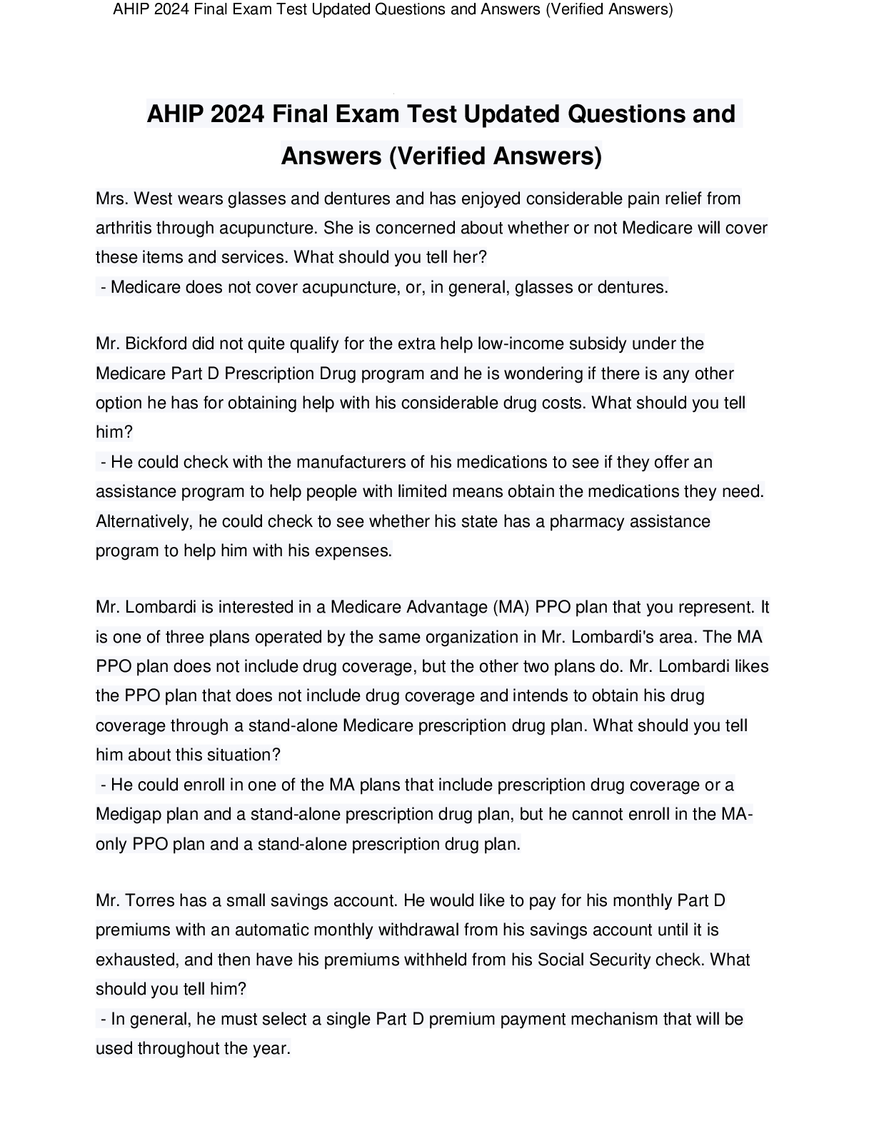 *NURSINGFINAL EXAM  > AHIP 2024 Final Exam Test Updated Questions and Answers (Verified Answers)