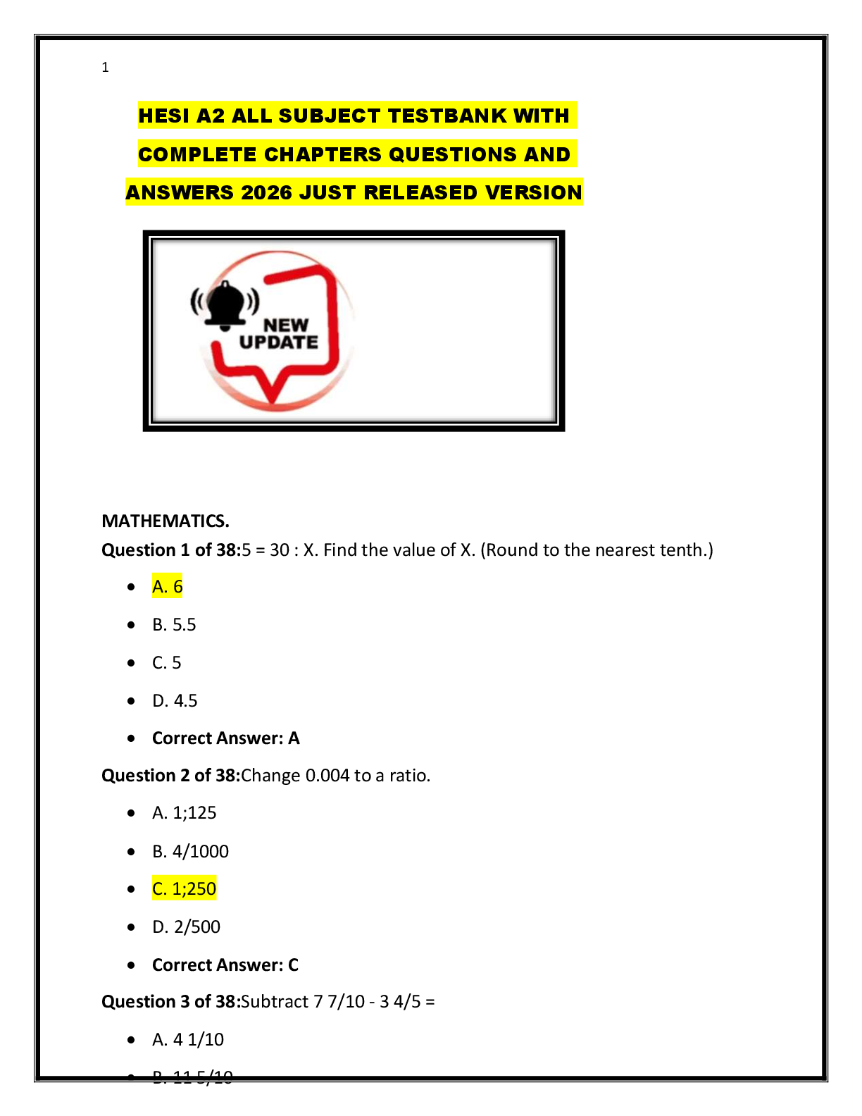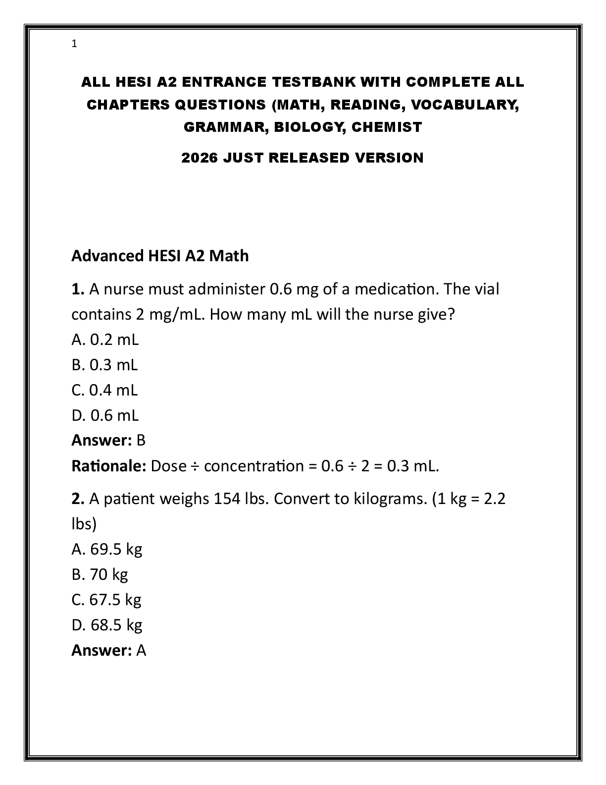 HESI > HESI A2 > HESI A2 ALL SUBJECT TESTBANK WITH COMPLETE CHAPTERS QUESTIONS AND ANSWERS 2026 JUST RELEASED VERSION