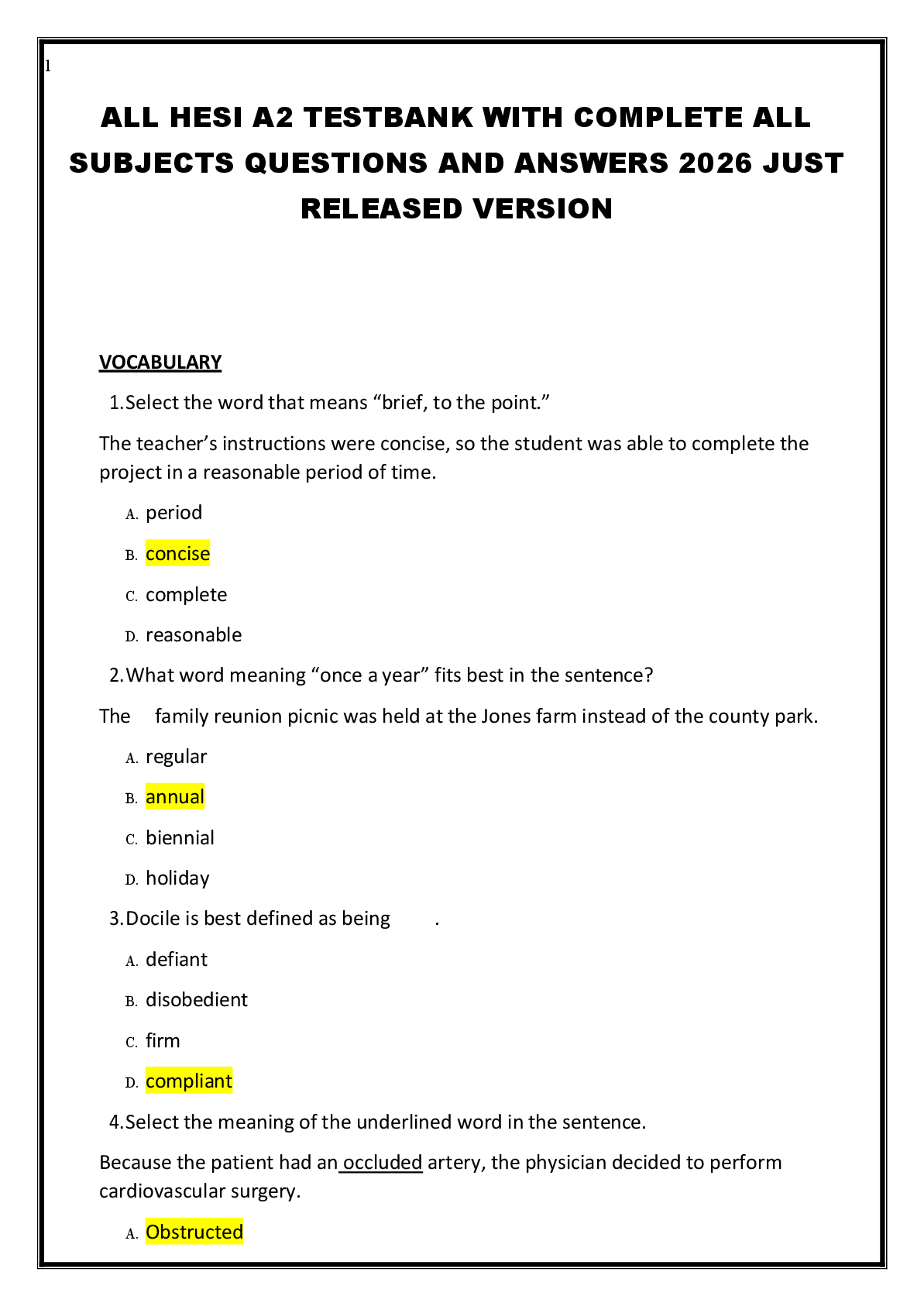 *NURSING > HESI A2 > HESI A2 V2 GRAMMAR, VOCAB, READING LATEST FINAL EXAM UPDATED FOR 2025-2026 ACTUAL QUESTIONS WITH 100% CERTIFIED, ELABORATED & VERIFIED SOLUTIONS TOP SCORE✓✓✓ ACE YOUR EXAMS