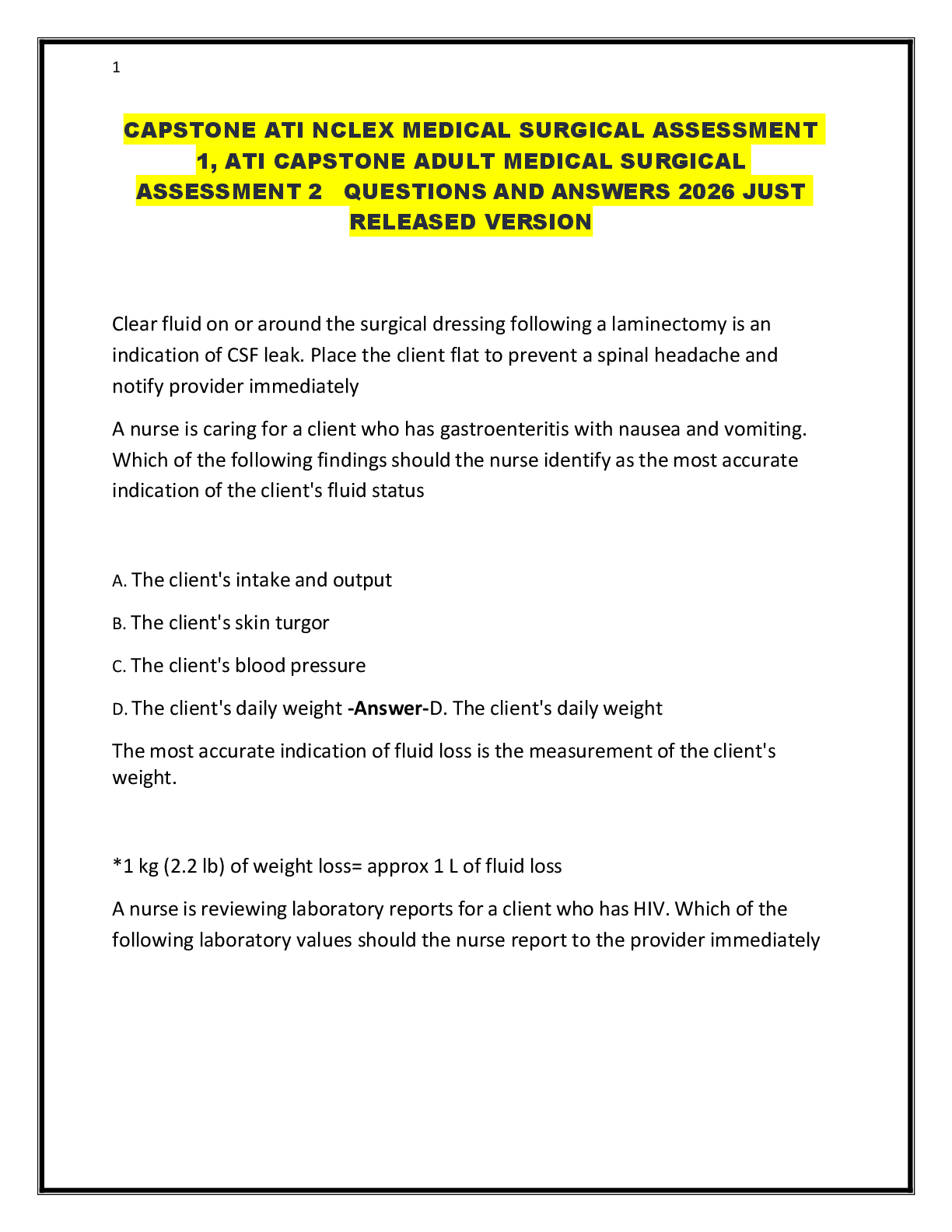 HESI MED SURG PRACTICE EXAM QUESTIONS AND ANSWERS WITH RATIONALES COMPLETE SOLUTION 2021 (LATEST FALL SEMESTER)