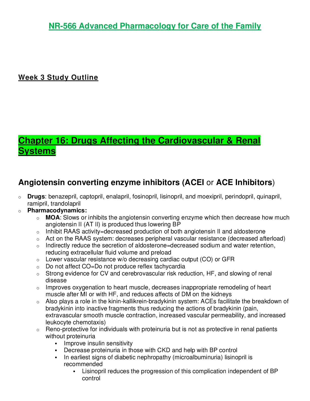 *NURSING > Summary > NR566 / NR 566: Advanced Pharmacology for Care of the Family Week 3 Study Guide (2021 / 2022) Chamberlain College of Nursing