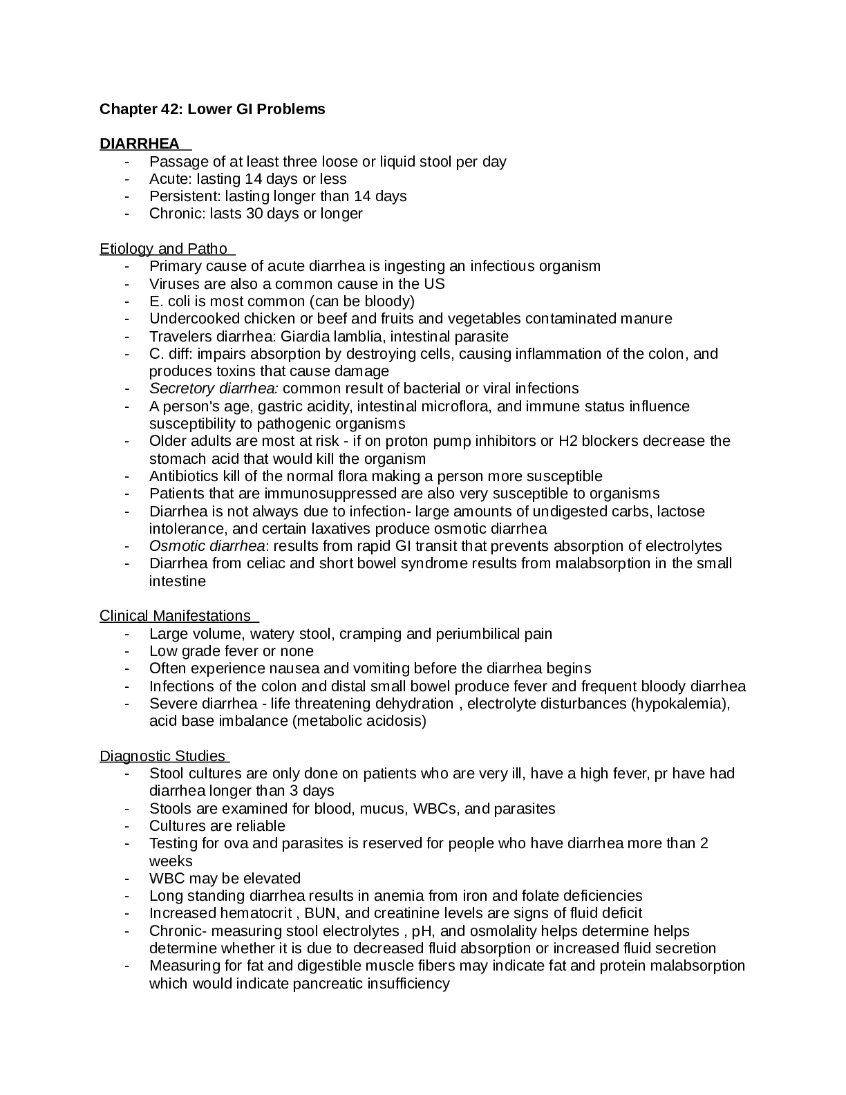 *NURSING > Summary > Summary Lower GI Problems complete study guide (NEW) >N410 chapter 42_Lower GI Problems.