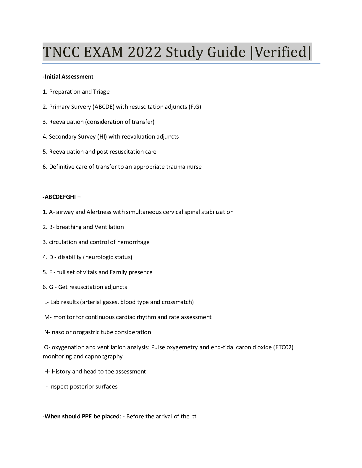 Health Care > Summary > TNCC Physical Assessments (Reviewed 2022) with complete solution