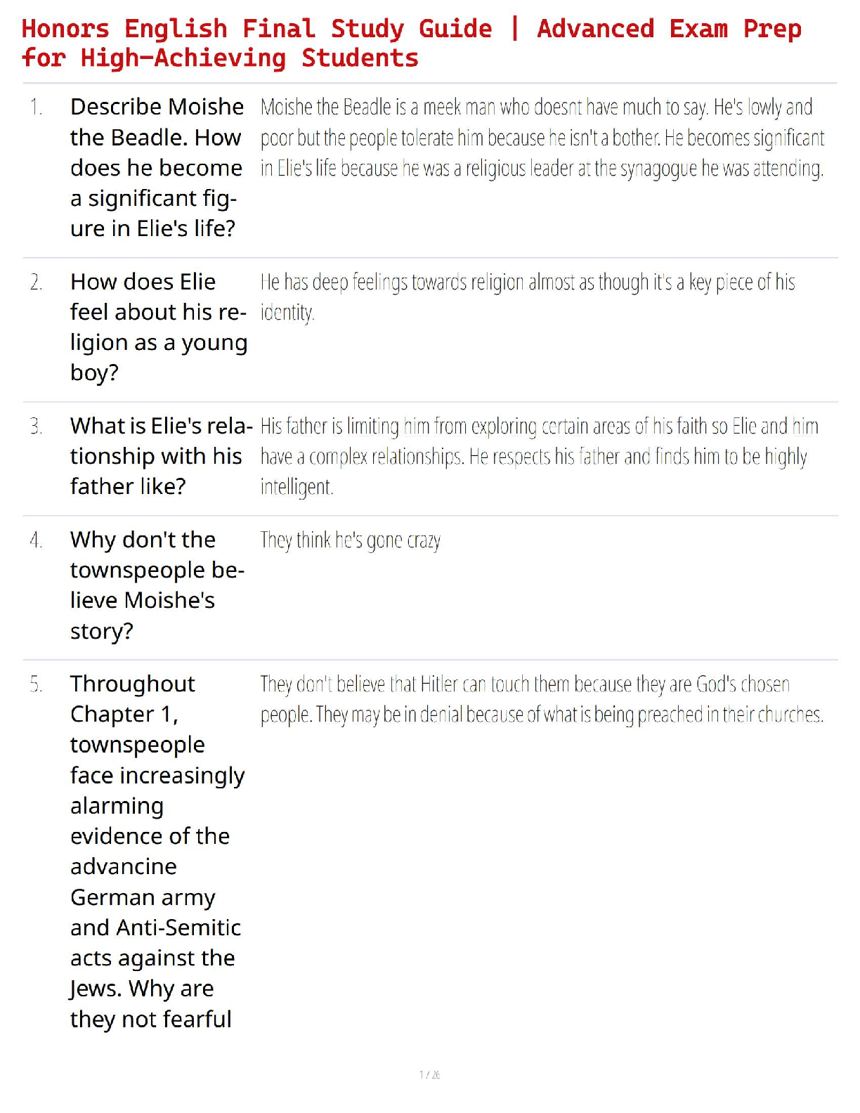 English > STUDY GUIDE > Honors English Final Study Guide | Advanced Exam Prep for High-Achieving Students