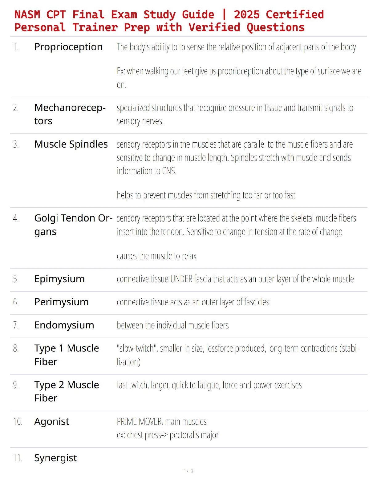 *NURSING > STUDY GUIDE > NASM CPT Final Exam Study Guide | 2025 Certified Personal Trainer Prep with Verified Questions