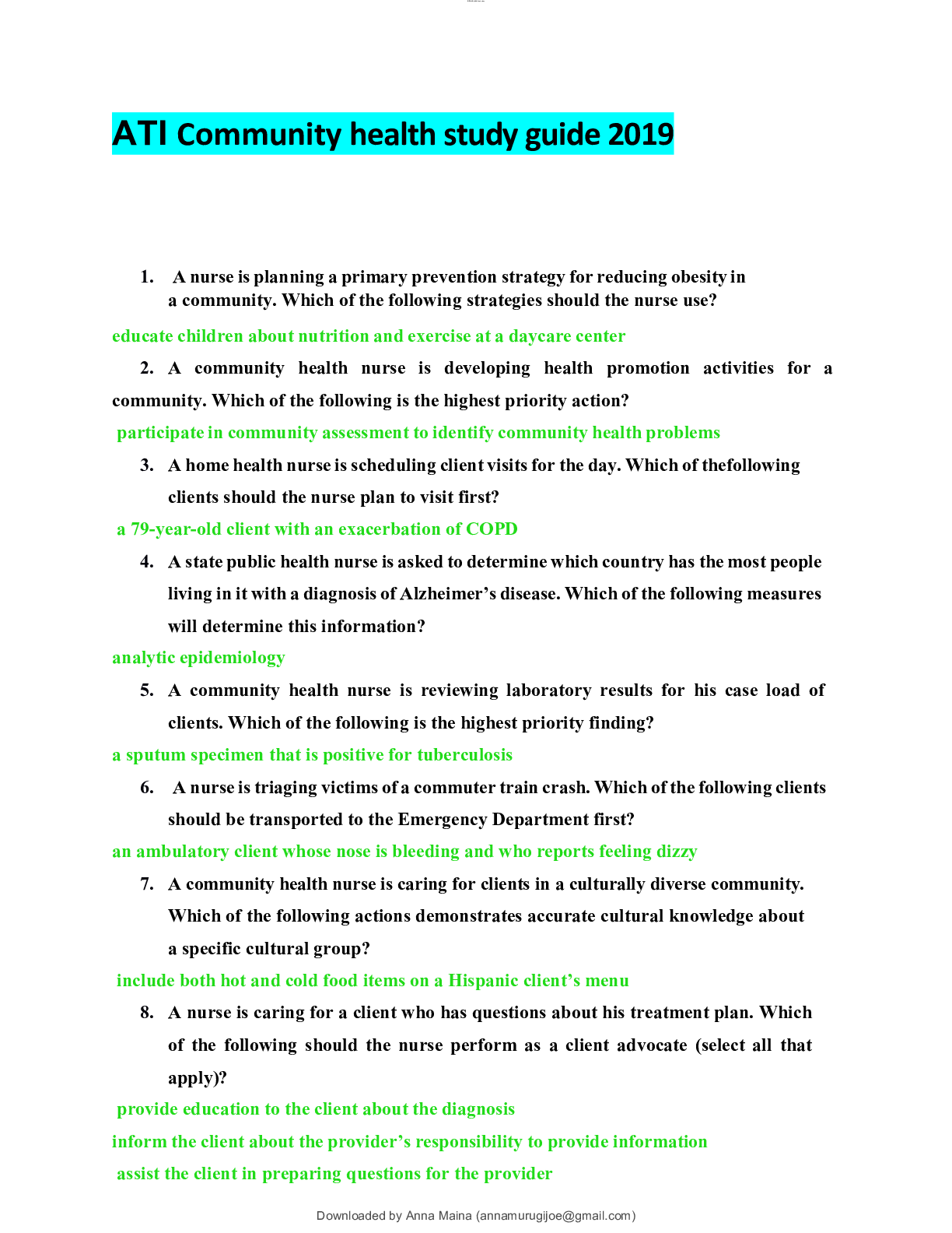 *NURSING > STUDY GUIDE > ATI Community health study guide 2019.pdf