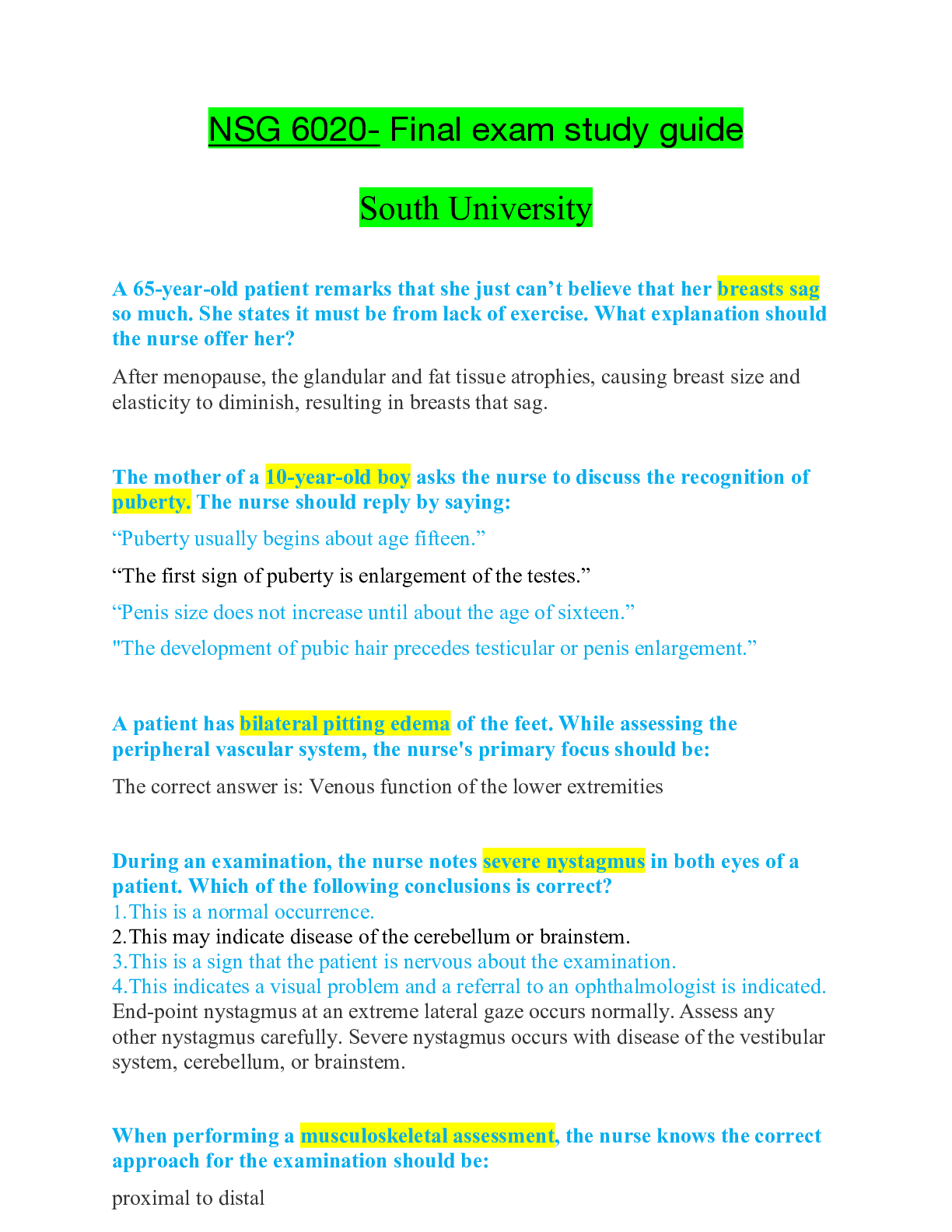 *NURSING > STUDY GUIDE > NSG 6020- Final exam study guide.pdf