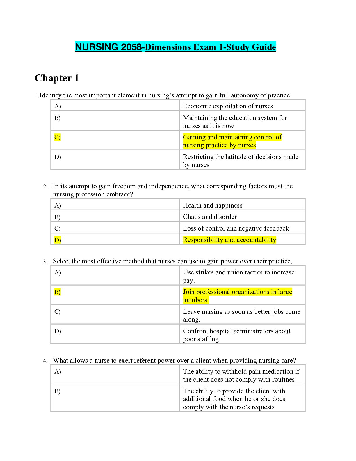 *NURSING > STUDY GUIDE > NURSING 2058-Dimensions Exam 1-Study Guide.pdf