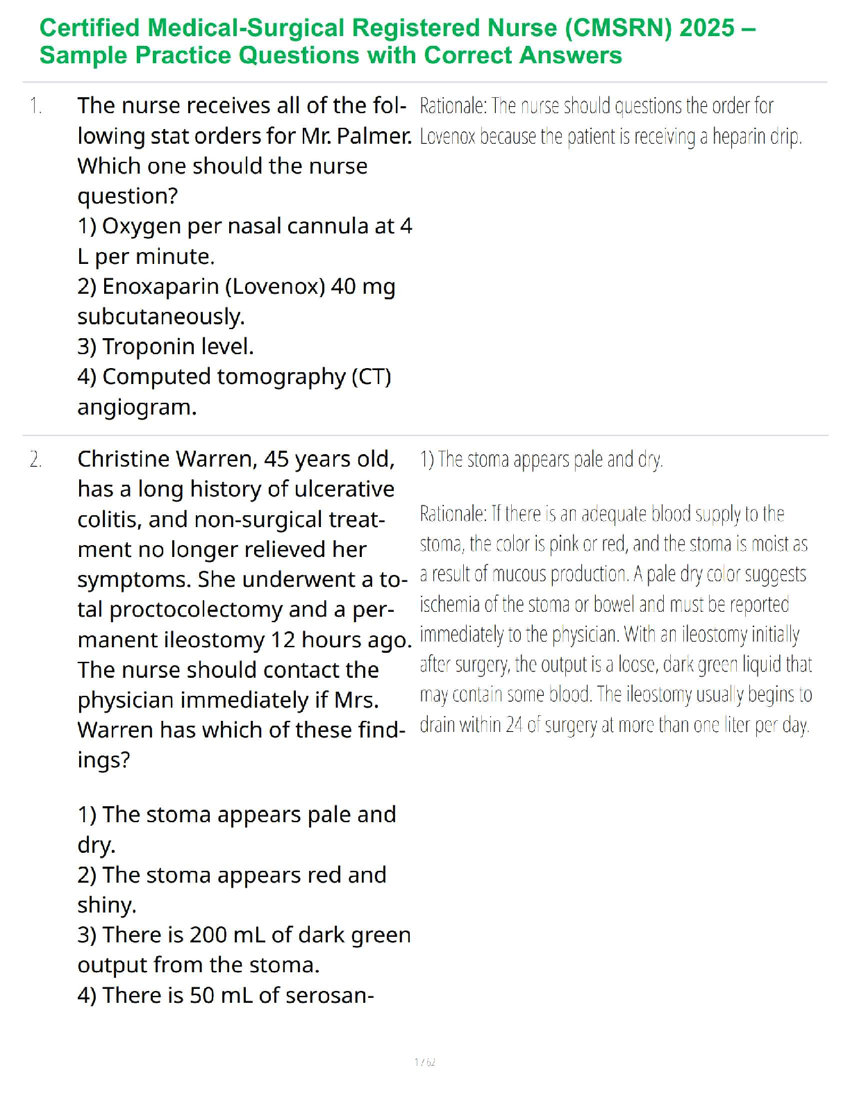 *NURSING > STUDY GUIDE > Certified Medical-Surgical Registered Nurse (CMSRN) 2025 – Sample Practice Questions with Correct Answers