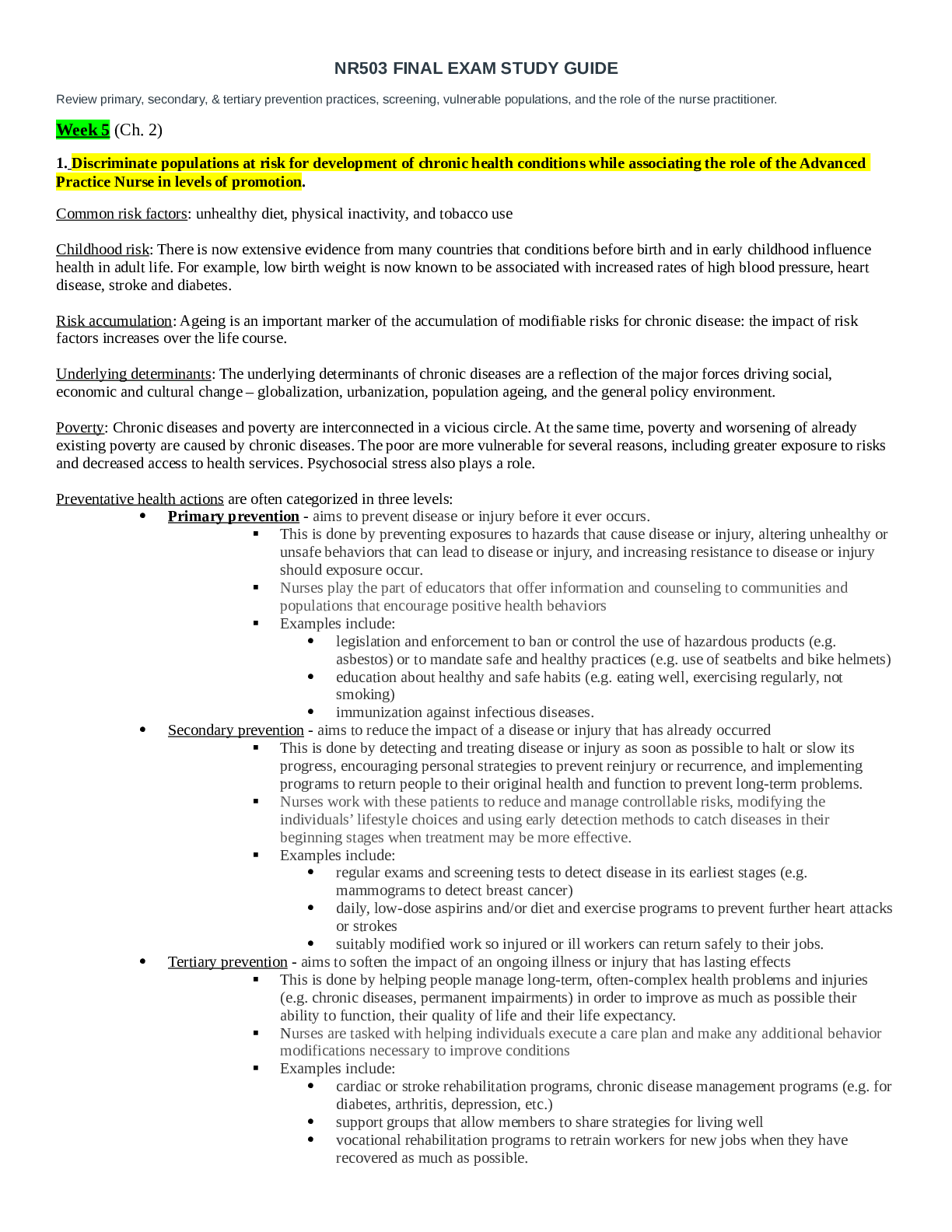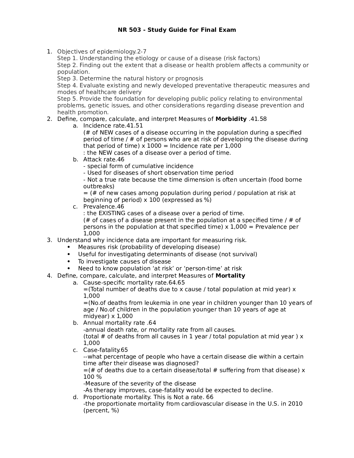 *NURSING > STUDY GUIDE > Chamberlain College of Nursing NR503 Epidemiology Final Exam Study Guide (Version 1) / NR 503 Epidemiology Final Study Guide : Population Health, Epidemiology & Statistical Principles: (New 2021)