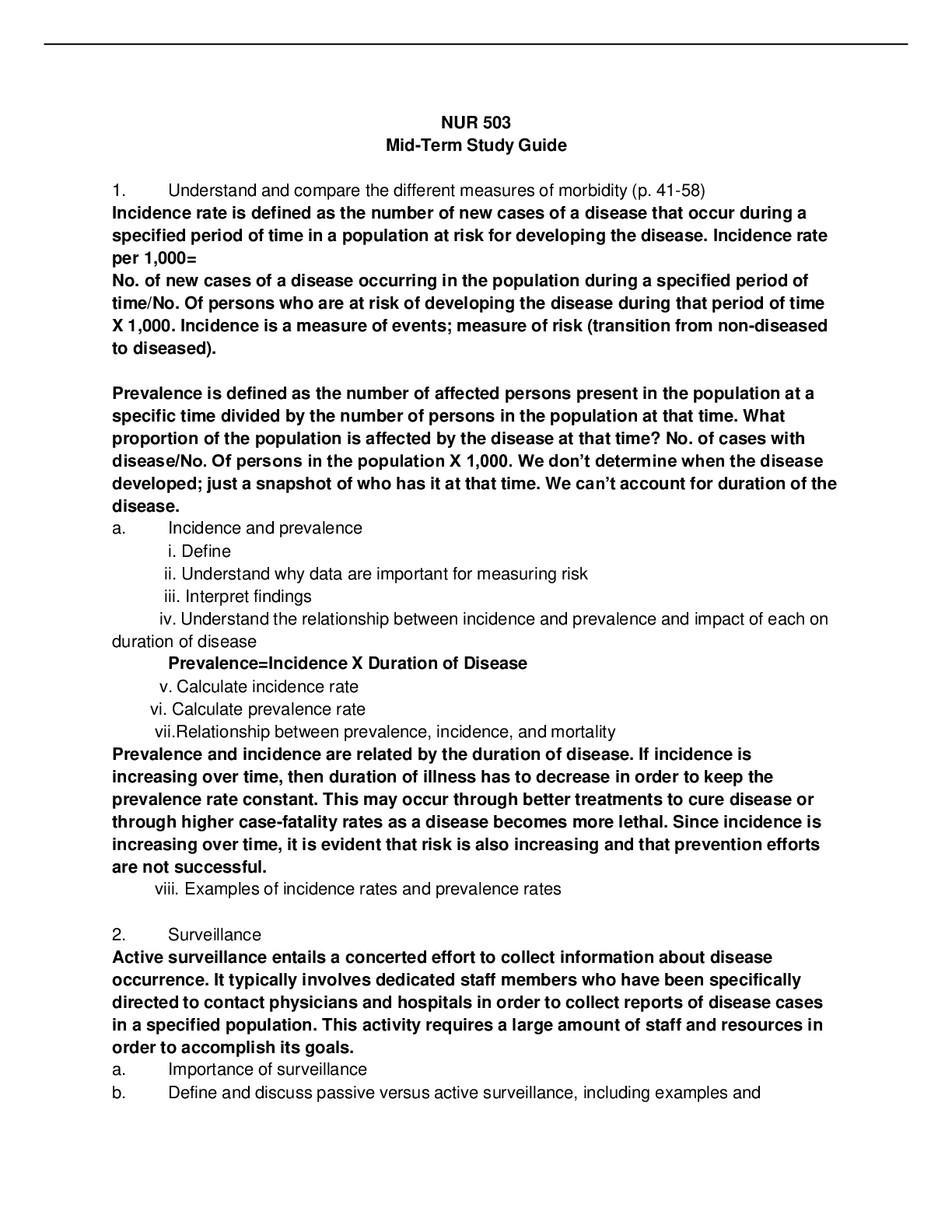*NURSING > STUDY GUIDE > Chamberlain College of Nursing NR503 Epidemiology Midterm Study Guide (Version 1) / NR 503 Epidemiology Midterm Study Guide : Population Health, Epidemiology & Statistical Principles: (New 2021)