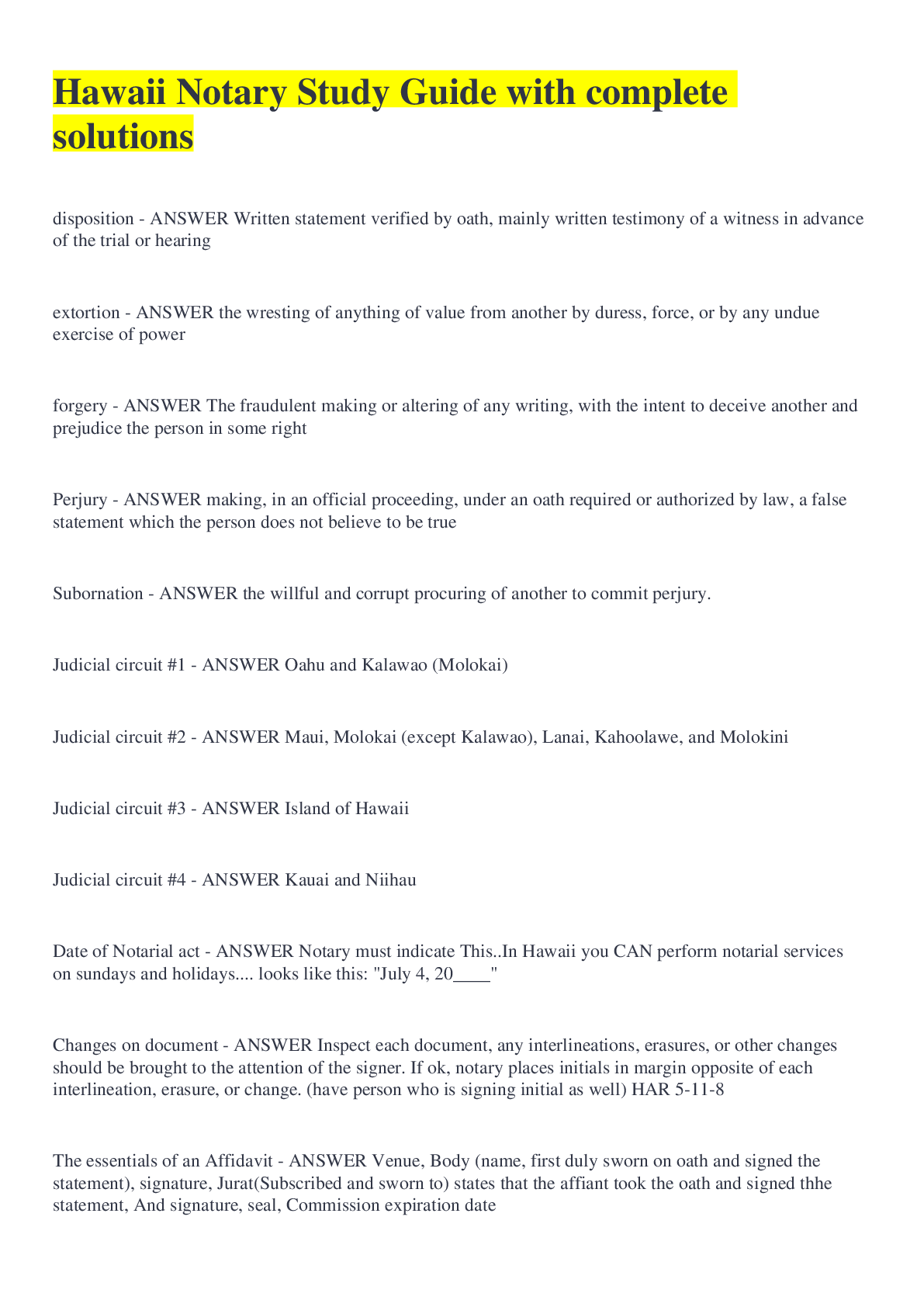 Education > STUDY GUIDE > Hawaii Notary Study Guide with complete solutions