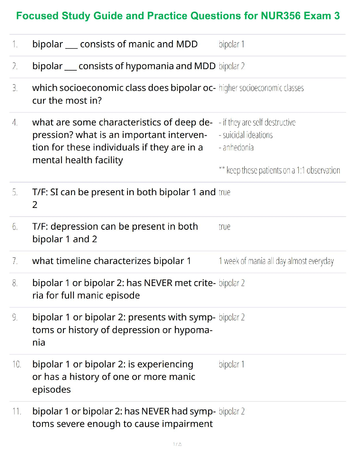 *NURSING > STUDY GUIDE > Focused Study Guide and Practice Questions for NUR356 Exam 3