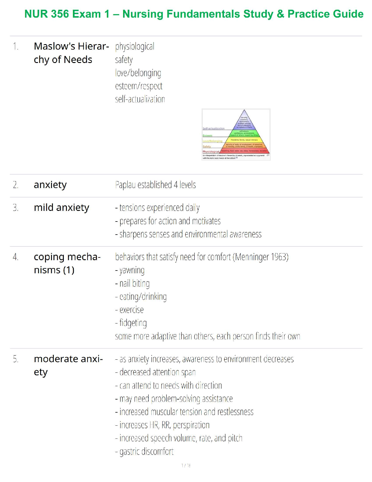 *NURSING > STUDY GUIDE > NUR 356 Exam 1 – Nursing Fundamentals Study & Practice Guide
