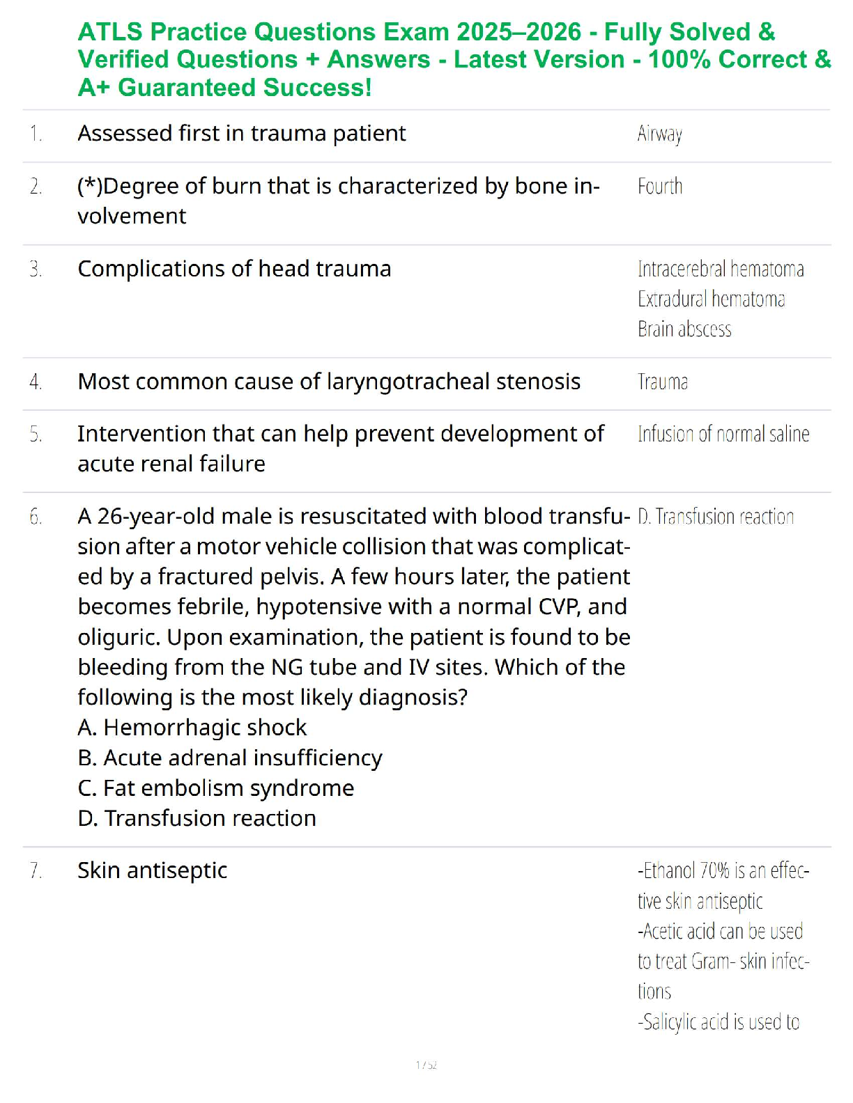 Health Care > STUDY GUIDE > ATLS Practice Questions Exam 2025–2026 - Fully Solved & Verified Questions + Answers - Latest Version - 100% Correct & A+ Guaranteed Success!