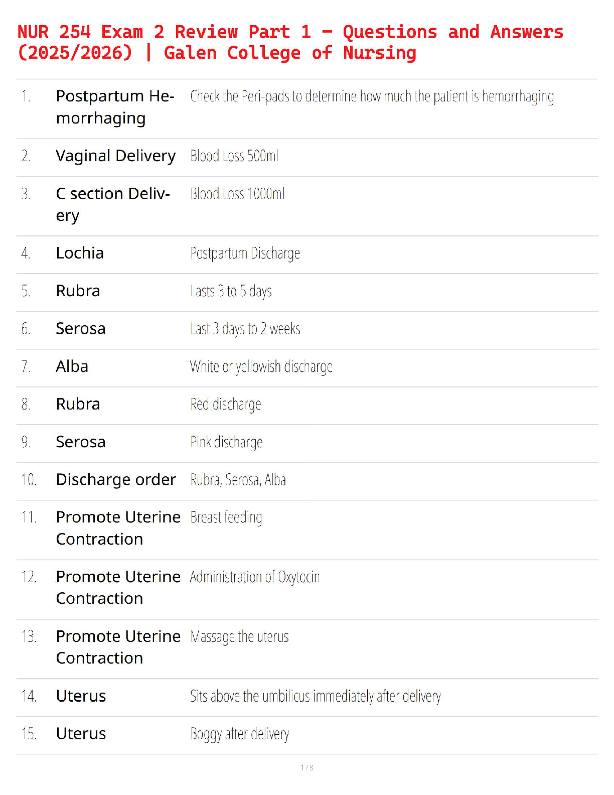 *NURSING > STUDY GUIDE > NUR 254 Exam 2 Review Part 1 – Questions and Answers (20252026) Galen College of Nursing