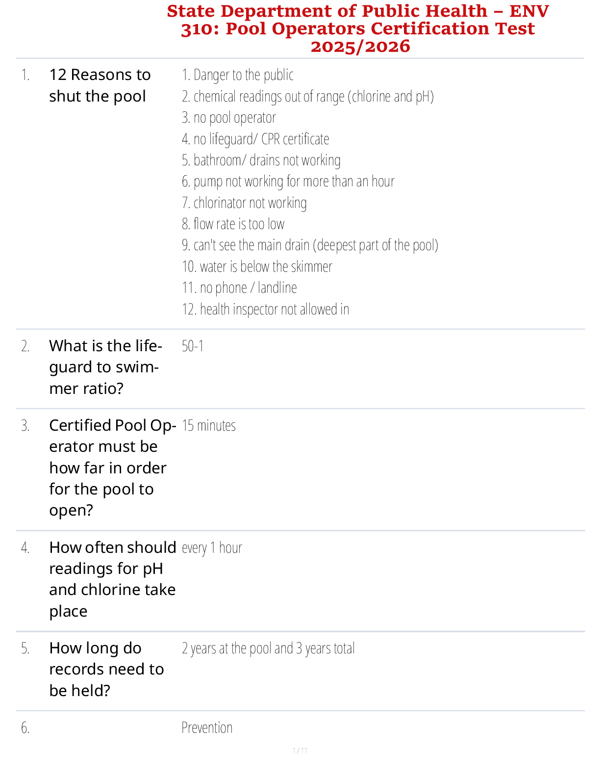 CERTIFIED FITNESS TRAINER > STUDY GUIDE > State Department of Public Health – ENV 310: Pool Operators Certification Test 2025/2026