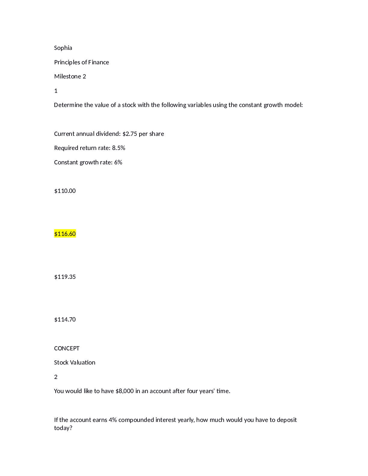 Finance > STUDY GUIDE > FINANCE 215 - Sophia Principles of Finance Milestone 2, Questions and Answers-2020. (Strayer University)