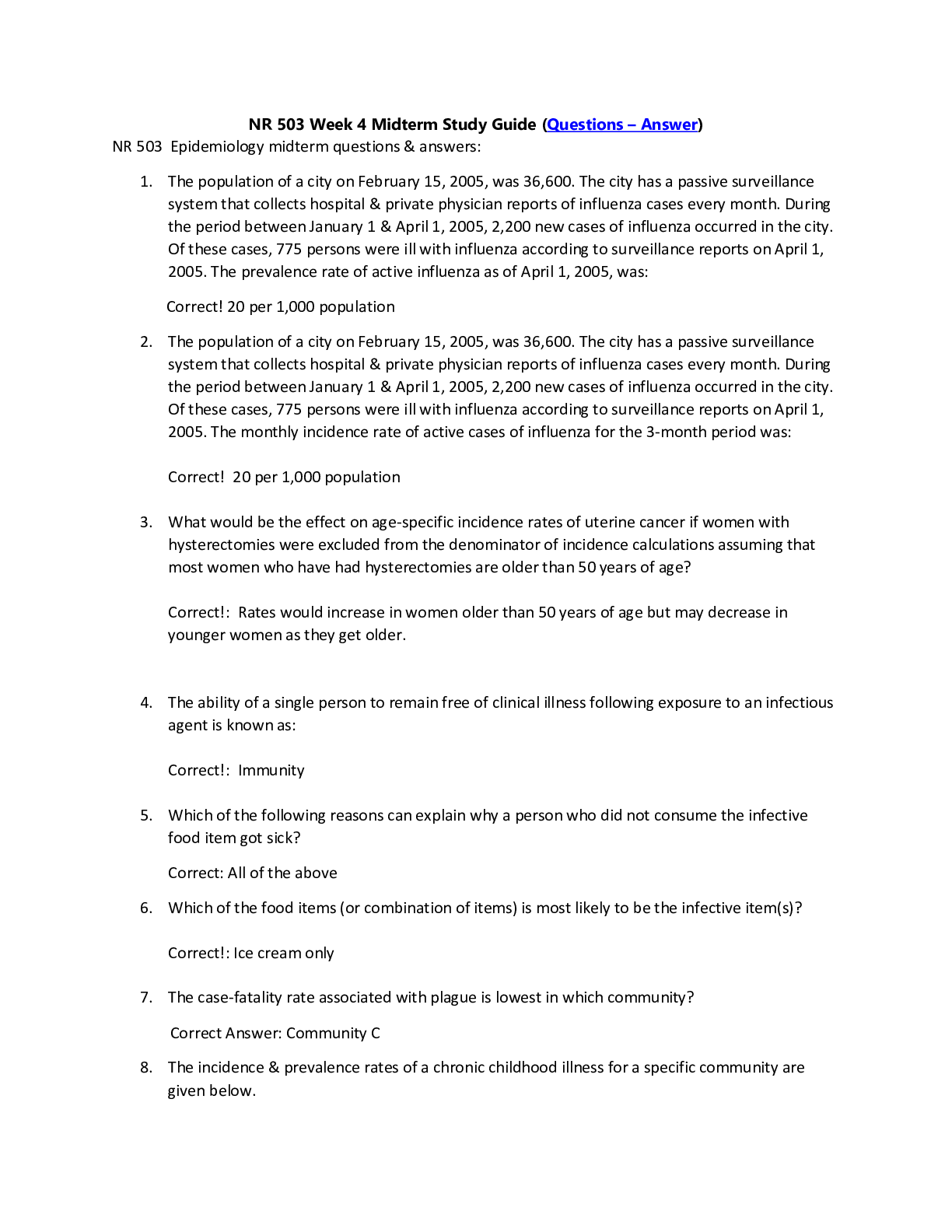 *NURSING > STUDY GUIDE > NR 503 Population Health, Epidemiology & Statistical Principles - Week 8 Final Exam Study Guide-Notes (Collection)