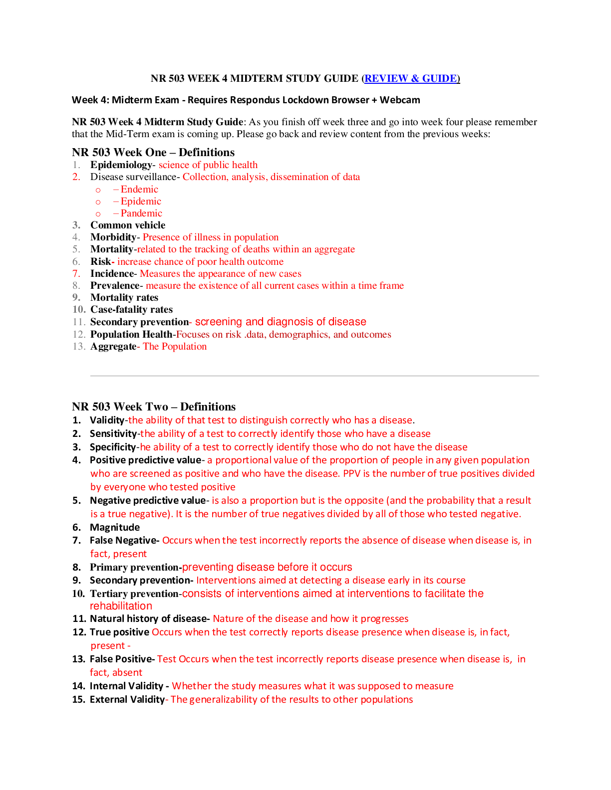 *NURSING > STUDY GUIDE > NR 503 Population Health, Epidemiology & Statistical Principles - Week 4 Midterm Study Guide (Review & Guide)