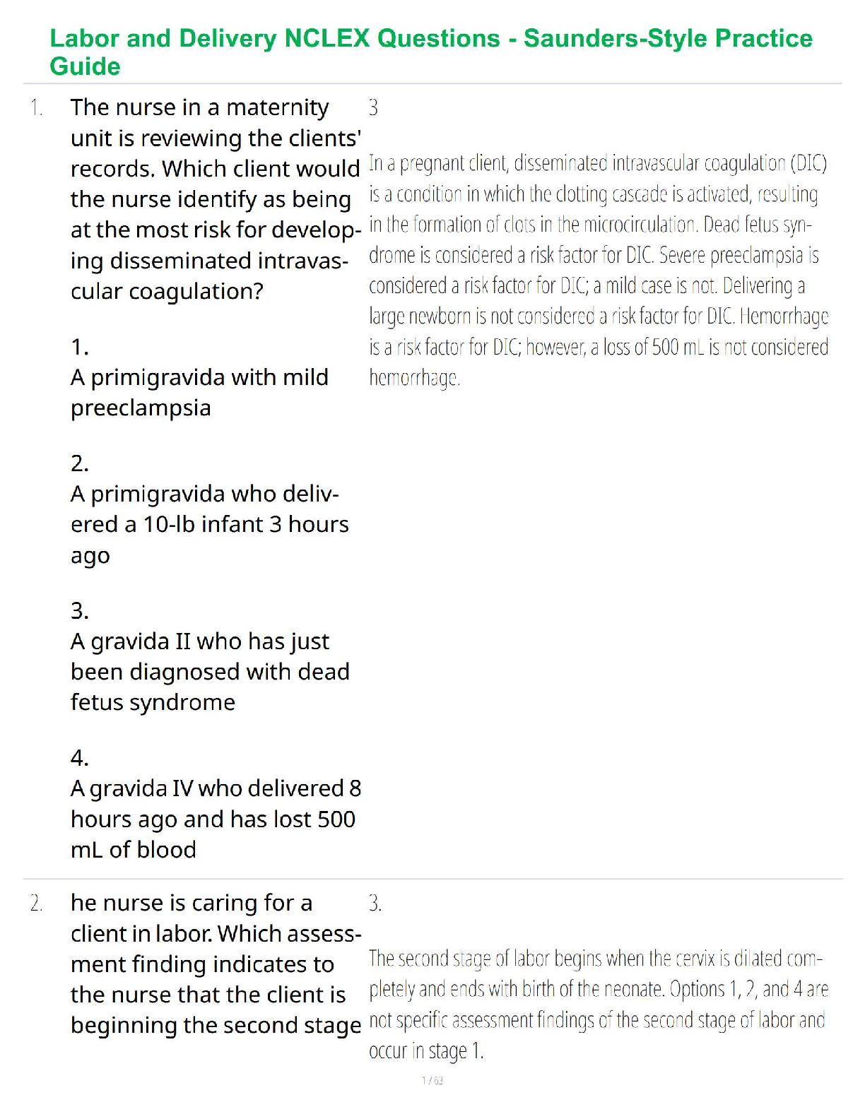 *NURSING > STUDY GUIDE > Labor and Delivery NCLEX Questions - Saunders-Style Practice Guide