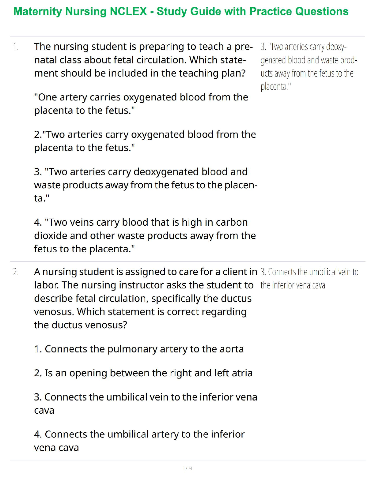 *NURSING > STUDY GUIDE > Maternity Nursing NCLEX - Study Guide with Practice Questions