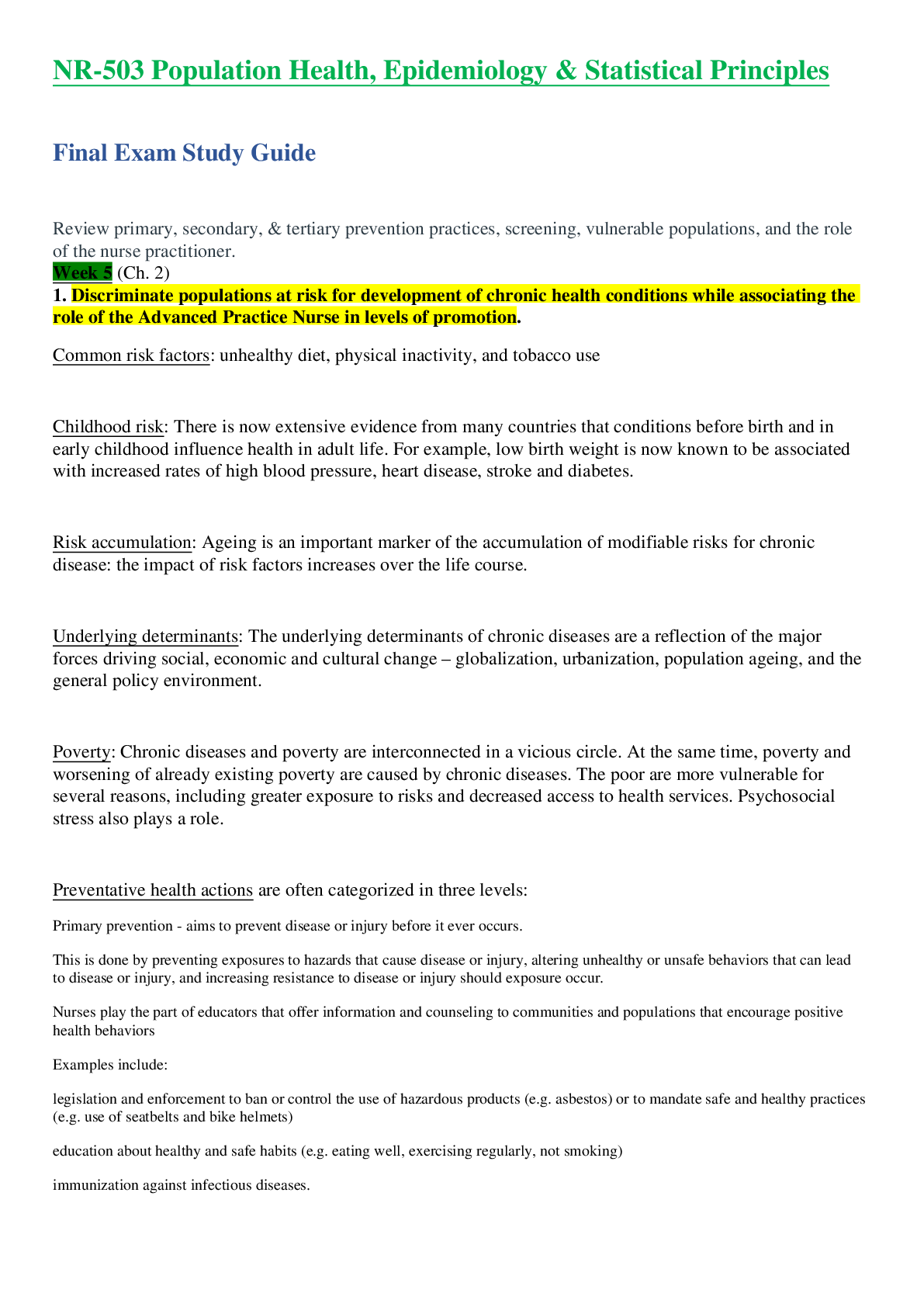 *NURSING > STUDY GUIDE > NR503 / NR 503: Population Health, Epidemiology & Statistical Principles Midterm Exam Study Guide Recap of Week 1, 2, 3 & 4 Latest Update Chamberlain College Of Nursing