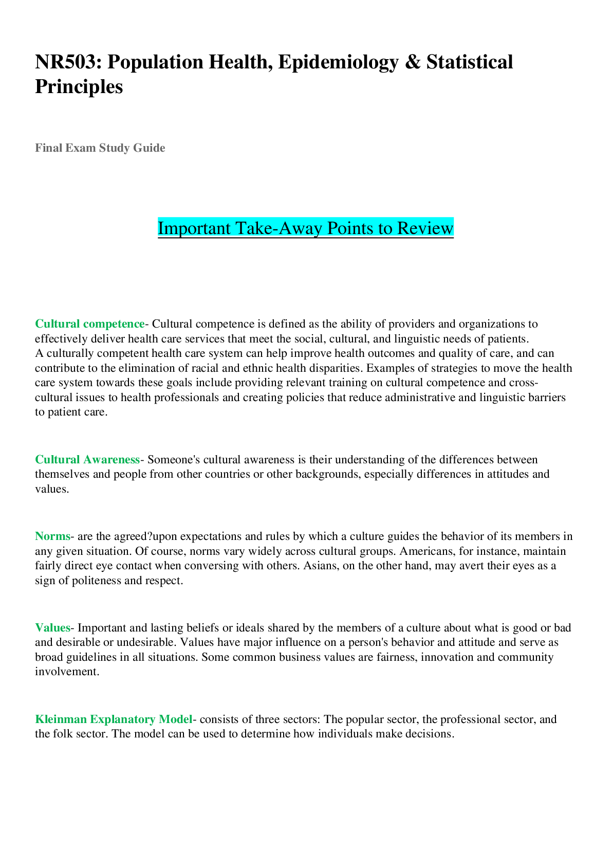 *NURSING > STUDY GUIDE > NR503 / NR 503: Population Health, Epidemiology & Statistical Principles Final Exam Study Guide (Fall 2020) Chamberlain College Of Nursing
