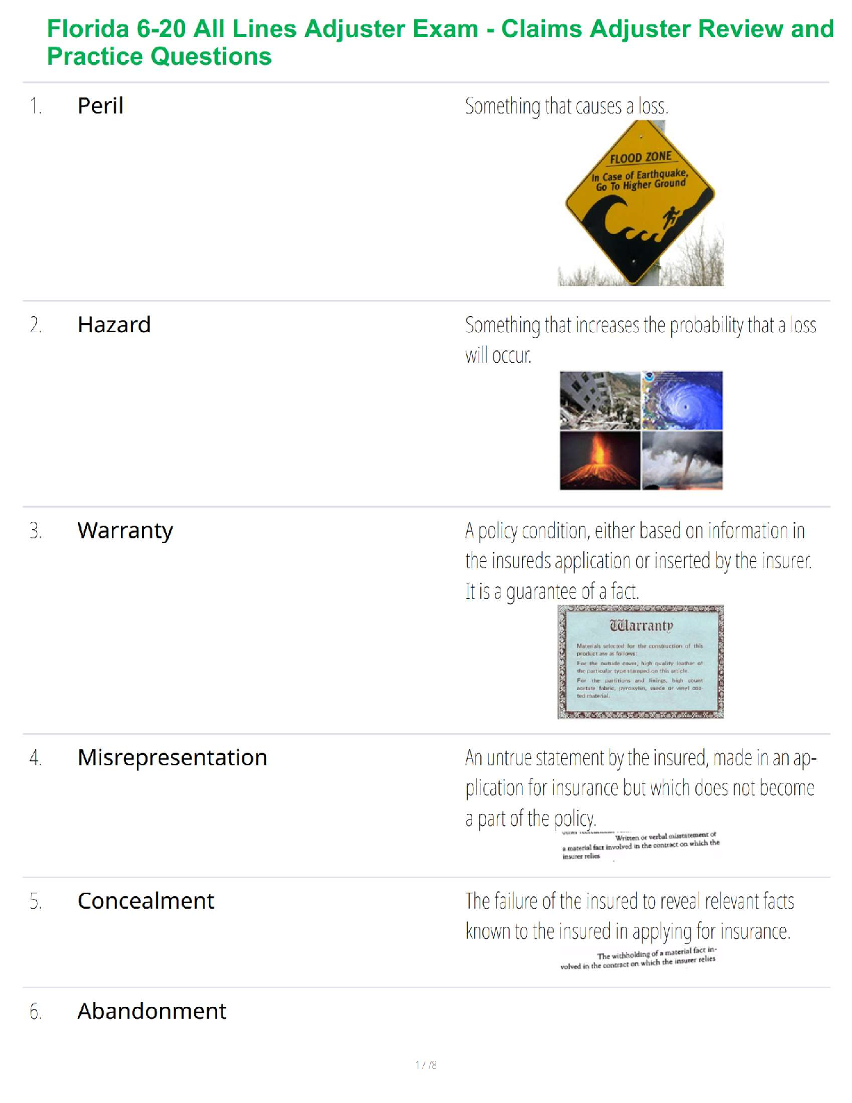 Insurance Studies > STUDY GUIDE > Florida 6-20 All Lines Adjuster Exam - Claims Adjuster Review and Practice Questions