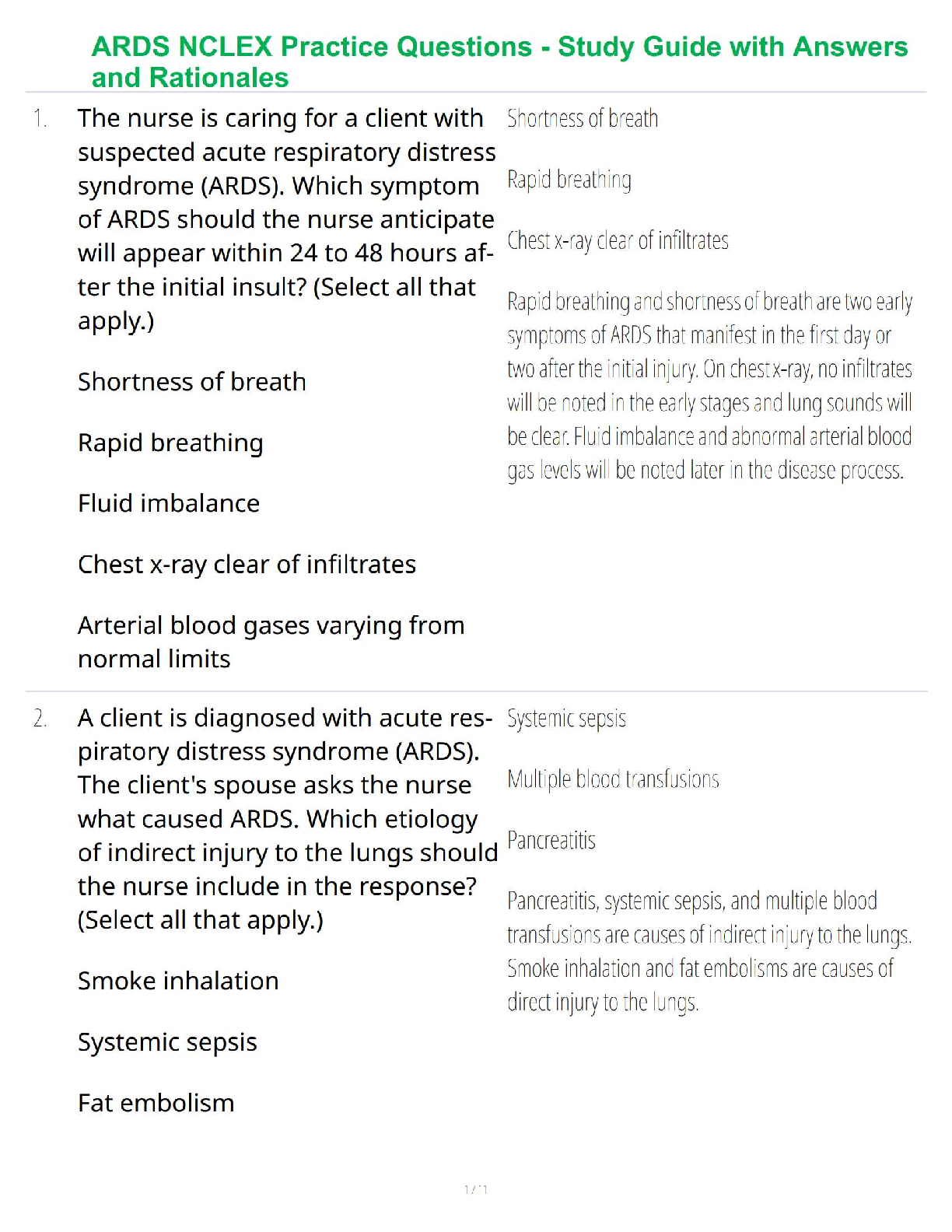 *NURSING > STUDY GUIDE > ARDS NCLEX Practice Questions - Study Guide with Answers and Rationales