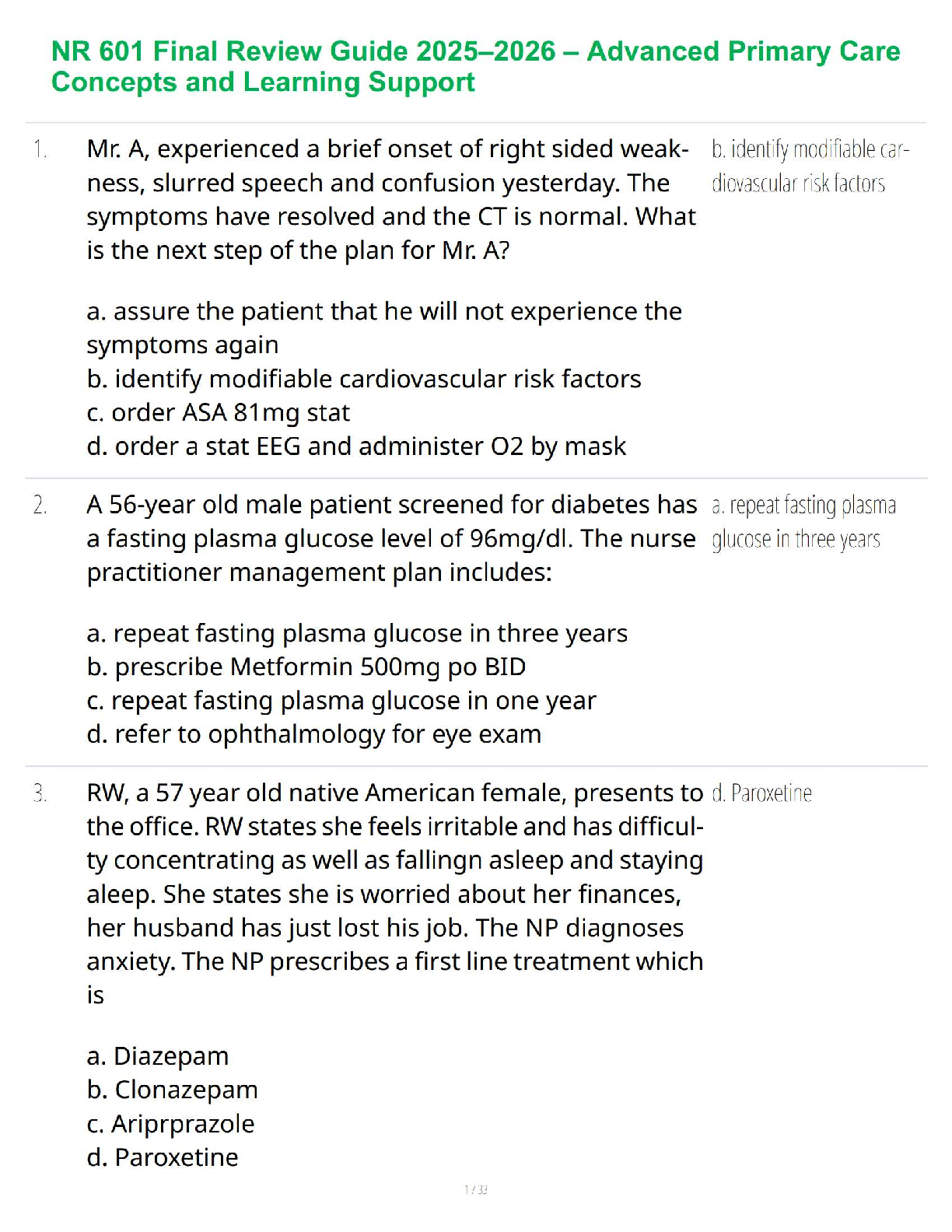*NURSING > STUDY GUIDE > NR 601 Final Review Guide 2025–2026 – Advanced Primary Care Concepts and Learning Support