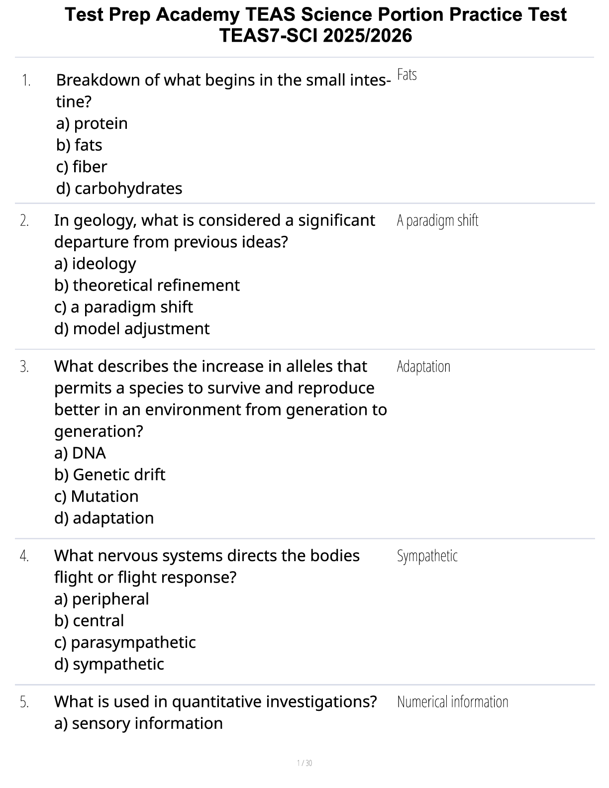 *NURSING > STUDY GUIDE > Test Prep Academy TEAS Science Portion Practice Test TEAS7-SCI 2025/2026