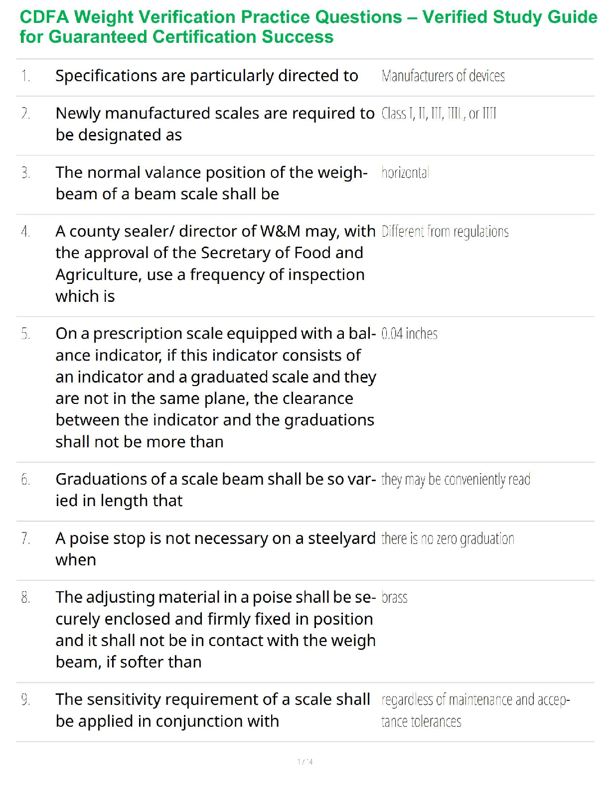 Food and Nutrition > STUDY GUIDE > CDFA Weight Verification Practice Questions – Verified Study Guide for Guaranteed Certification Success