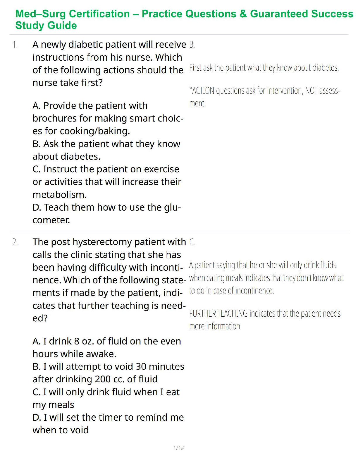NURSING 101 > STUDY GUIDE > Med–Surg Certification – Practice Questions & Guaranteed Success Study Guide