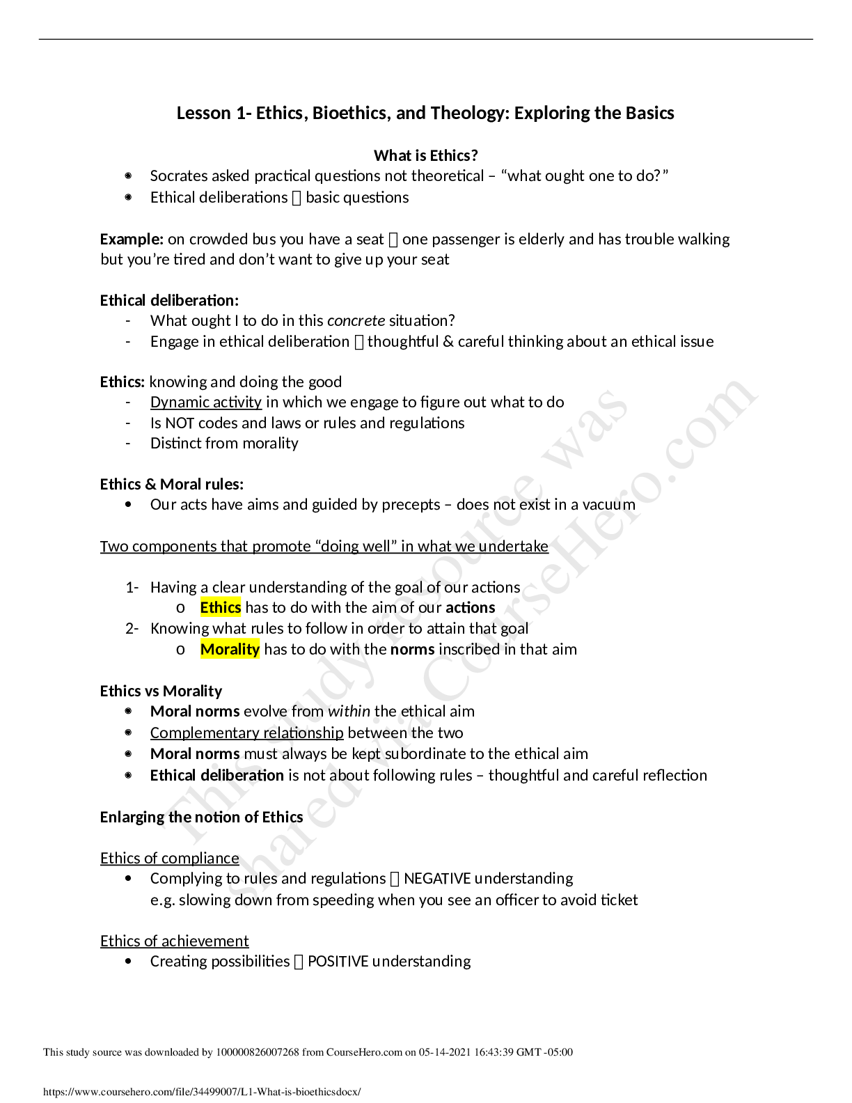 Religious Studies > STUDY GUIDE > L1- What is bioethics(Lesson 1- Ethics, Bioethics, and Theology: Exploring the Basics)