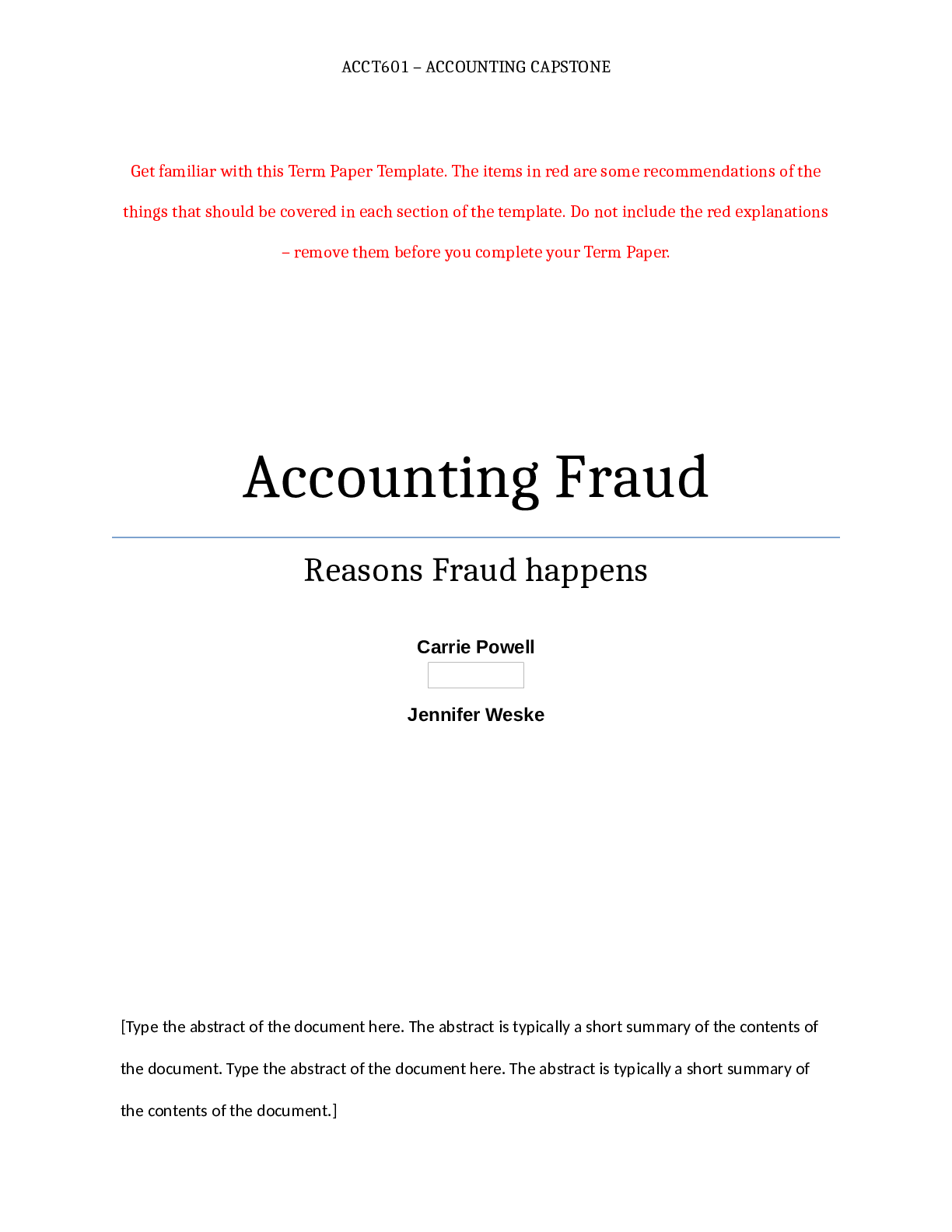 Accounting > STUDY GUIDE > ACCT 601 Week 5 Term Paper: Draft – Analysis and Recommendations Section