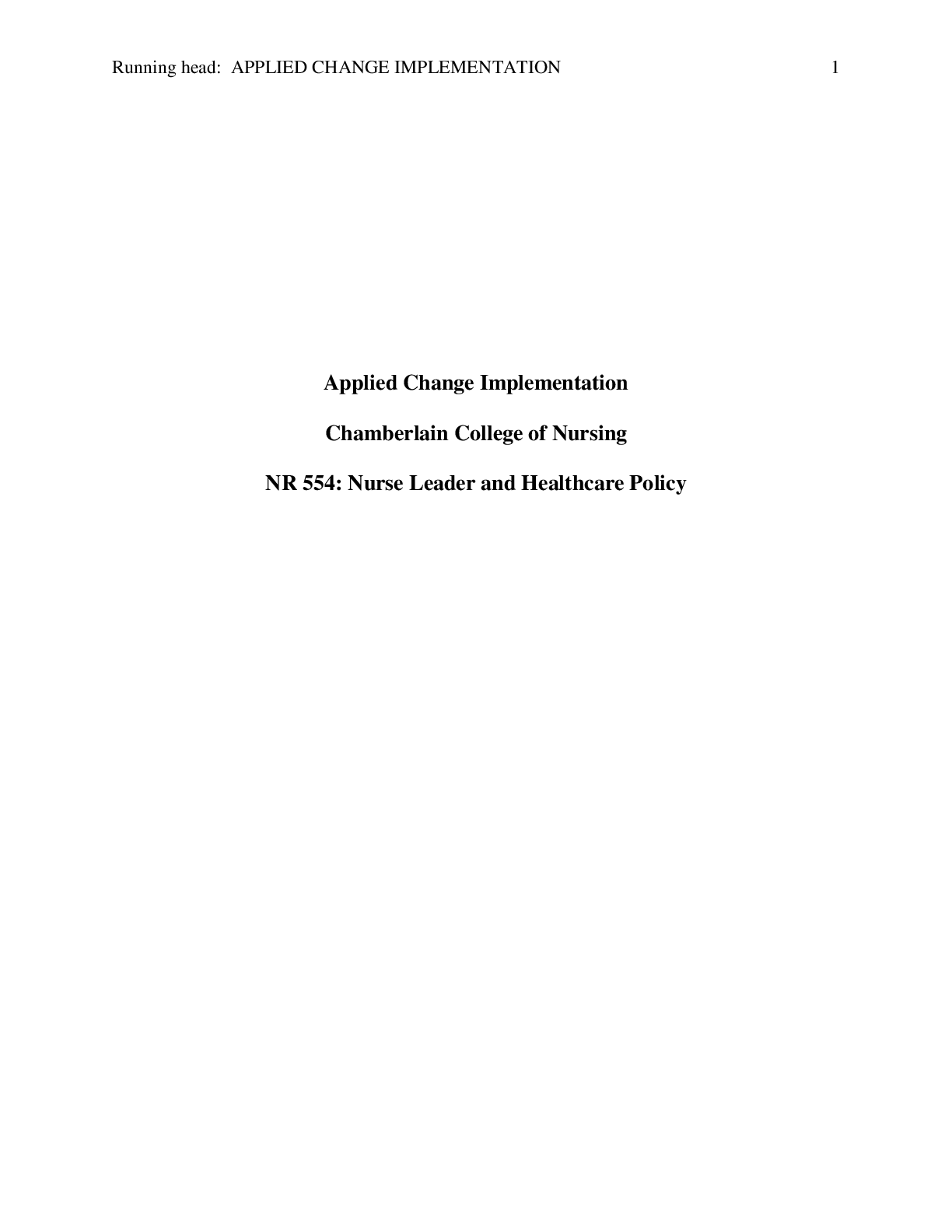 *NURSING > STUDY GUIDE > NR-554 Week 2 DQ (with Peer Response): Applied Change Implementation{GRADED A}