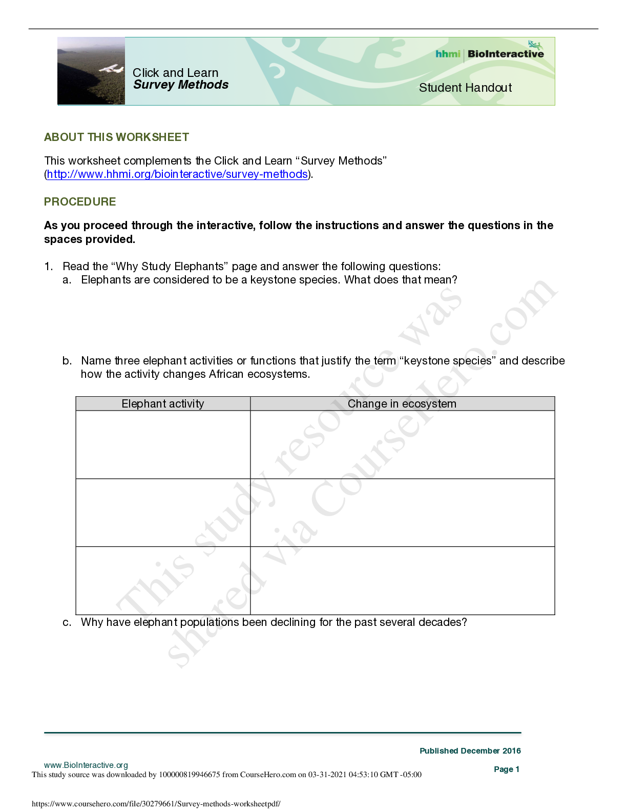 Biology > STUDY GUIDE > Garden City Community College - BIO 678Survey-methods-worksheet.