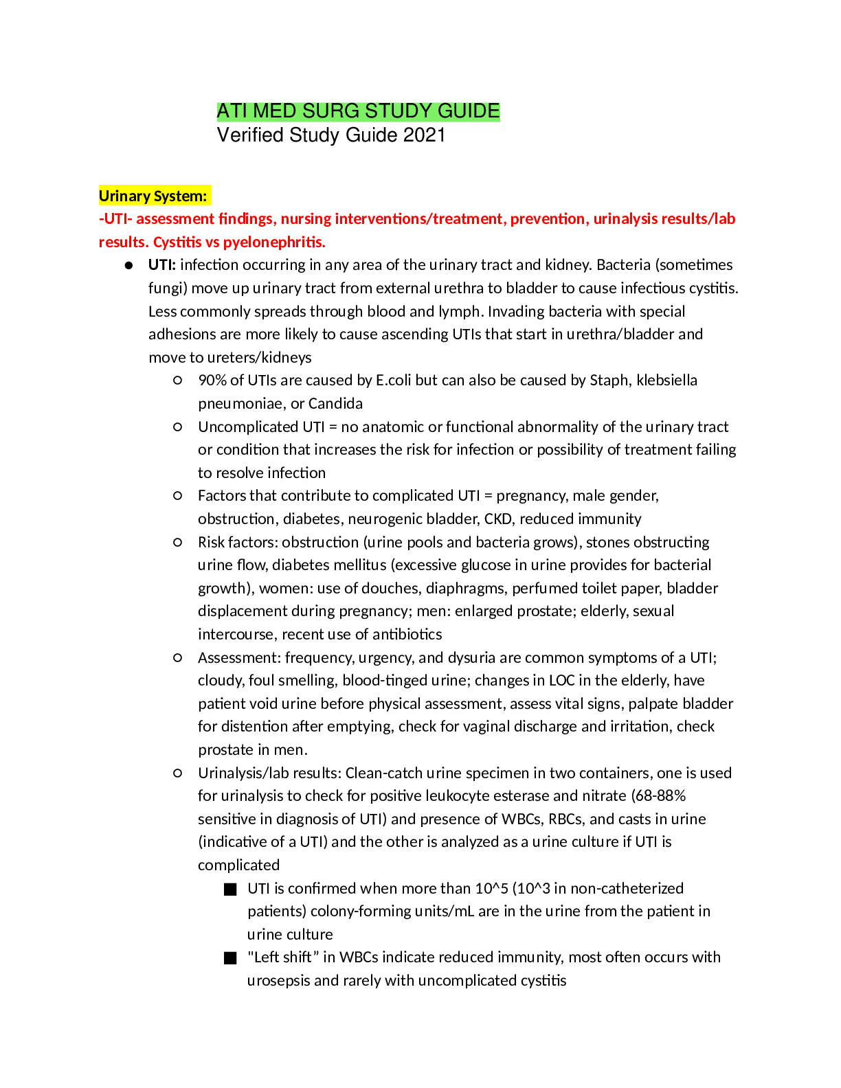 Health Care > STUDY GUIDE > ATI MED SURG STUDY GUIDE 2021- Diseases & Problems Affecting Urinary System
