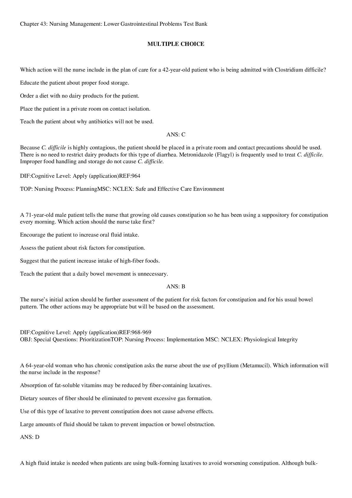 Health Care > STUDY GUIDE > Nursing Management Lower Gastrointestinal Problems Test Bank