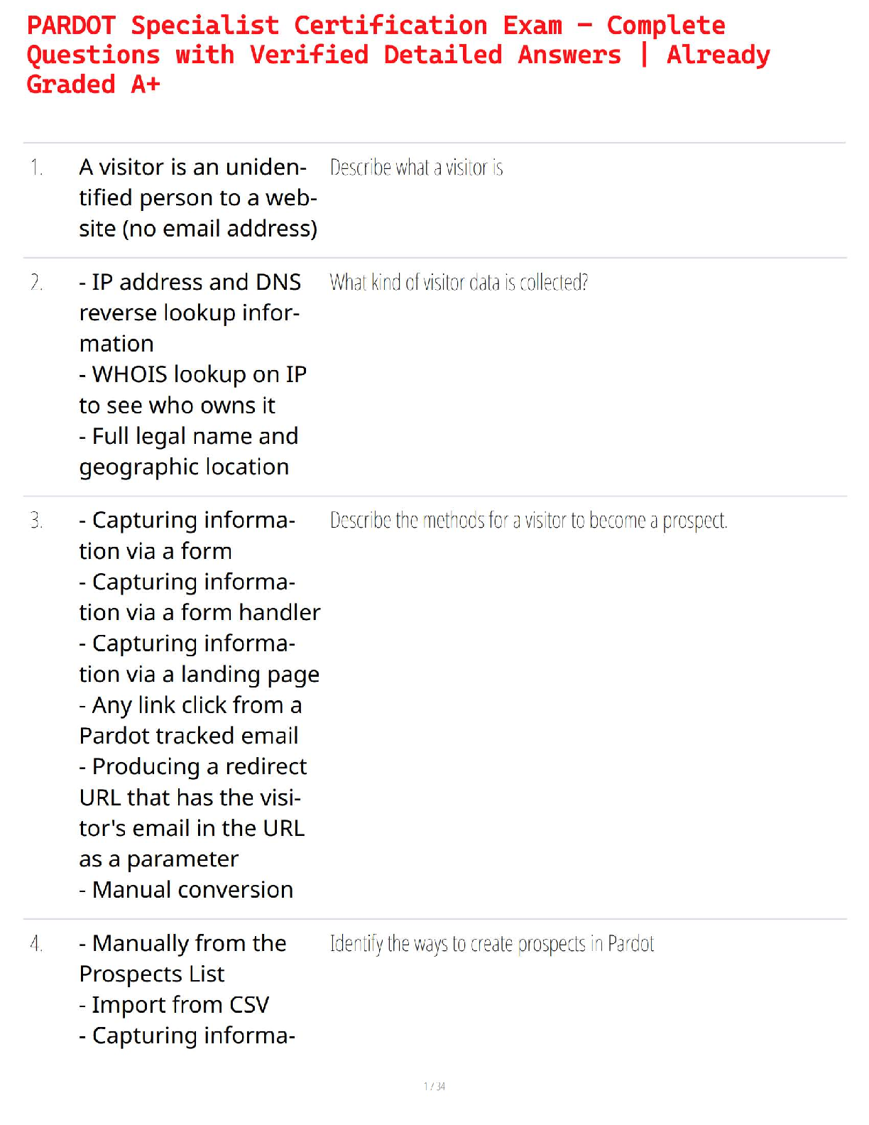Marketing > STUDY GUIDE > Pardot Specialist Certification Exam 2025 | Complete Practice Questions & Verified Answers