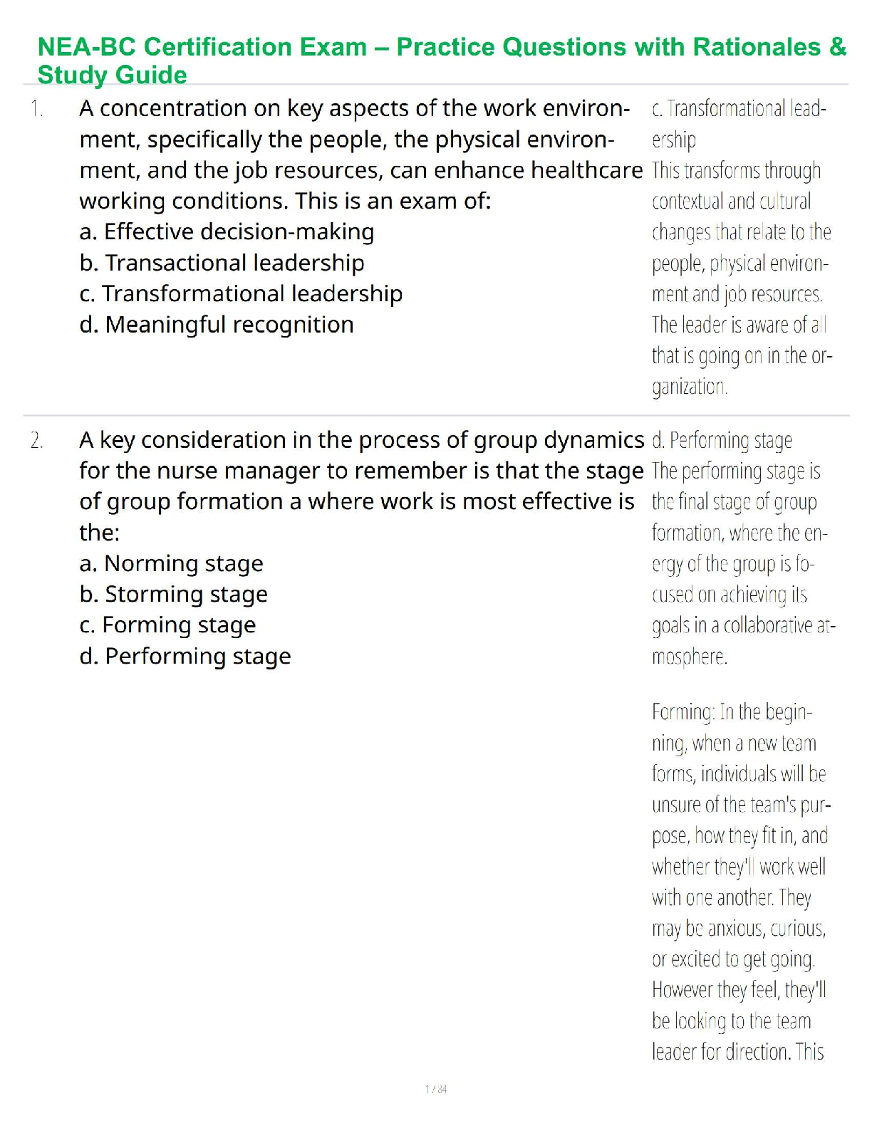 *NURSING > STUDY GUIDE > NEA-BC Certification – Leadership Exam Study Guide & Practice Questions