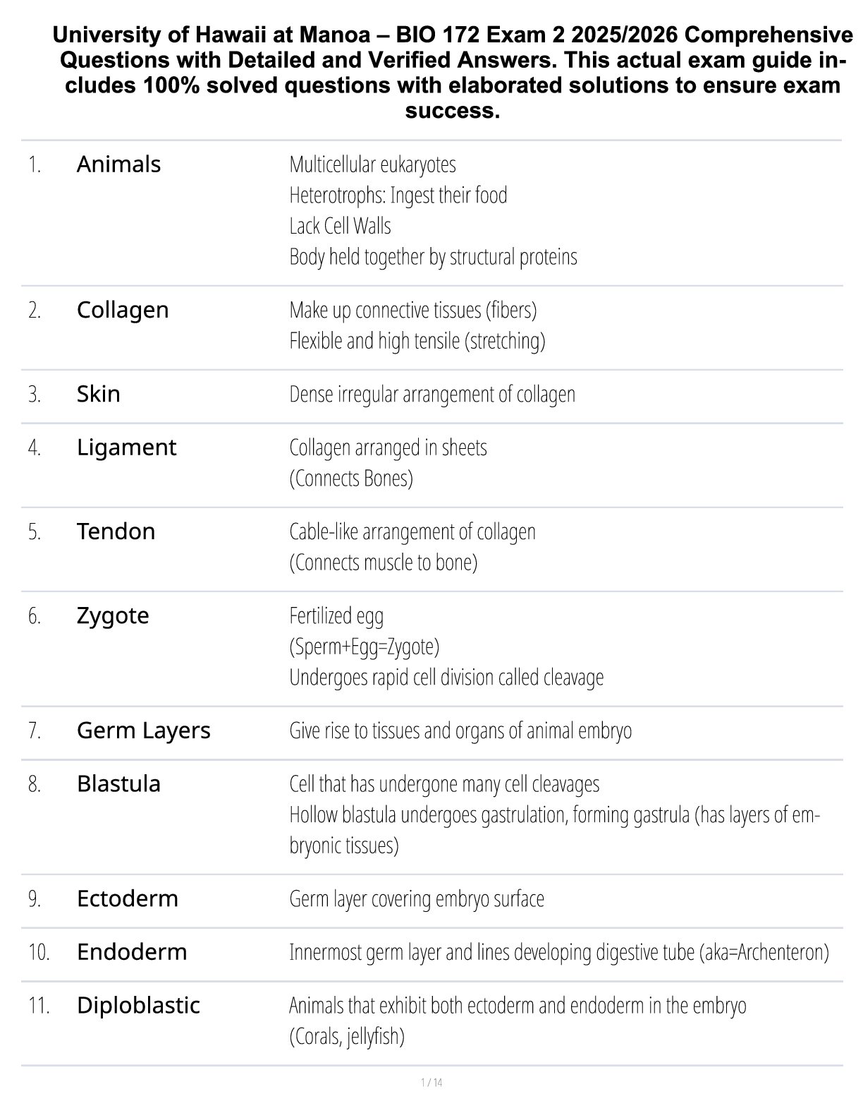 Biology > STUDY GUIDE > University of Hawaii at Manoa – BIO 172 Exam 2 2025/2026 Comprehensive Questions with Detailed and Verified Answers. This actual exam guide includes 100% solved questions with elaborated solutions to ensure exam success.