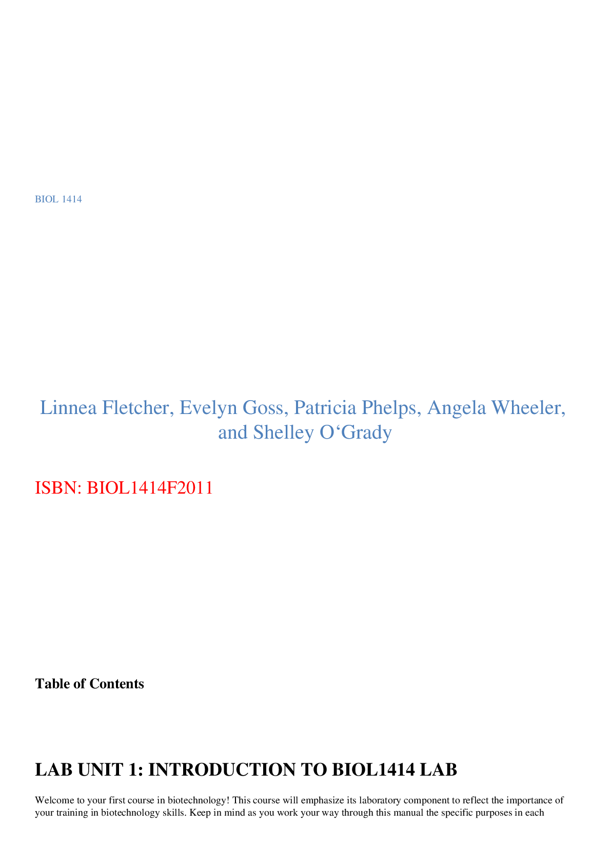 Biology > STUDY GUIDE > Exam (elaborations) BIOLOGY 1414 Introduction to Biotechnology Laboratory Manual 2023 updated