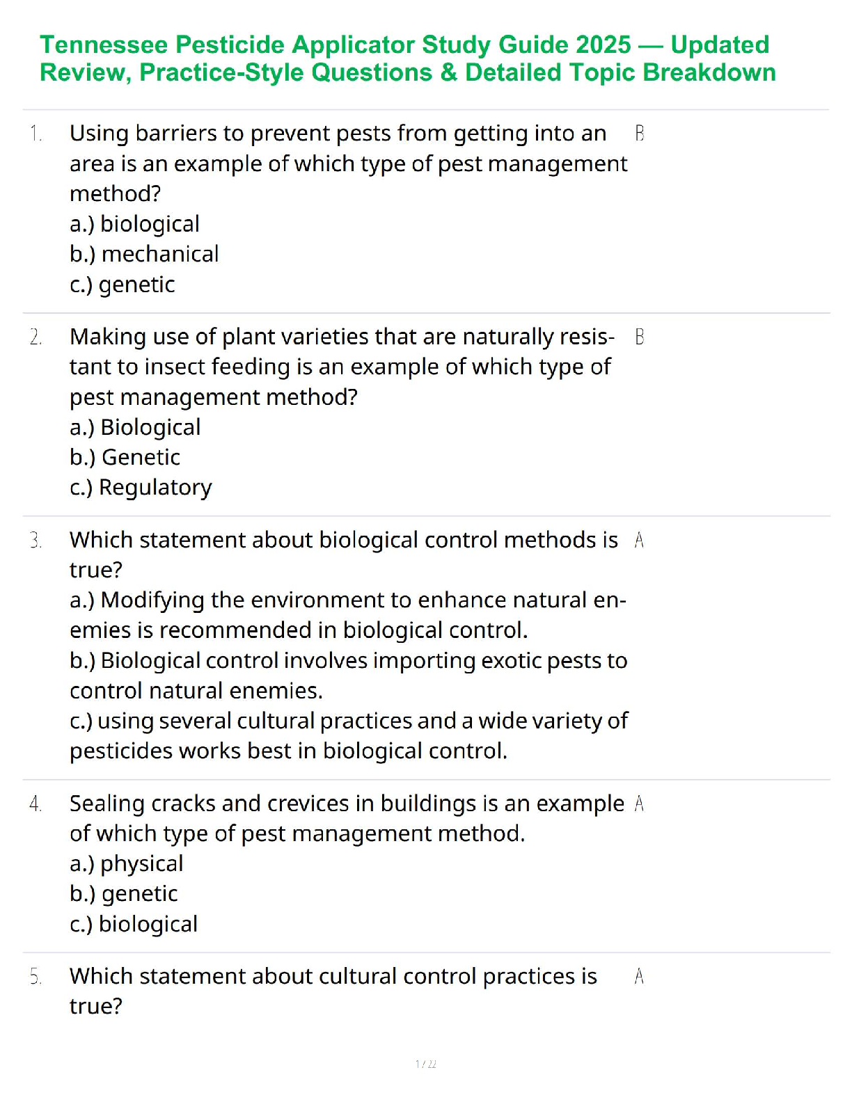 Agricultural Studies > STUDY GUIDE > Tennessee Pesticide Applicator Study Guide 2025 — Updated Review, Practice-Style Questions & Detailed Topic Breakdown