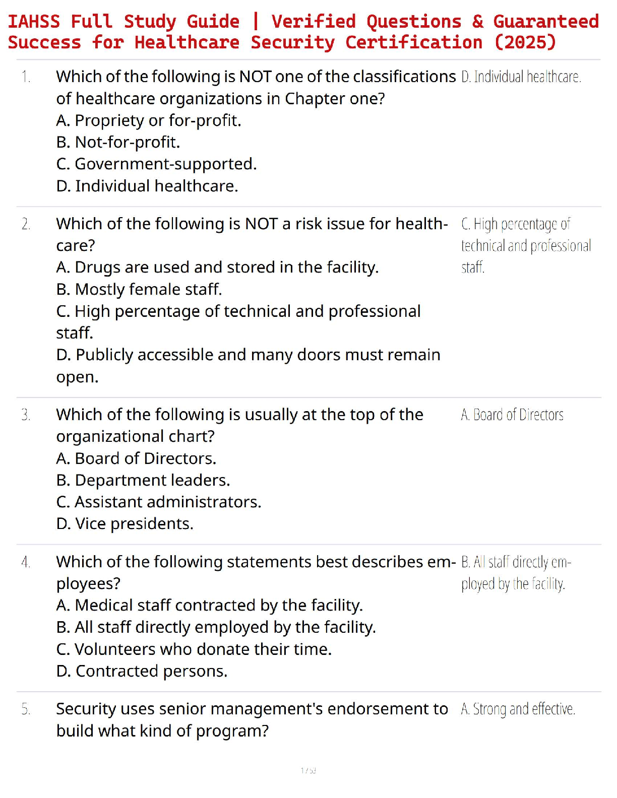 *NURSING > STUDY GUIDE > IAHSS Full Study Guide | Verified Questions & Guaranteed Success for Healthcare Security Certification (2025)